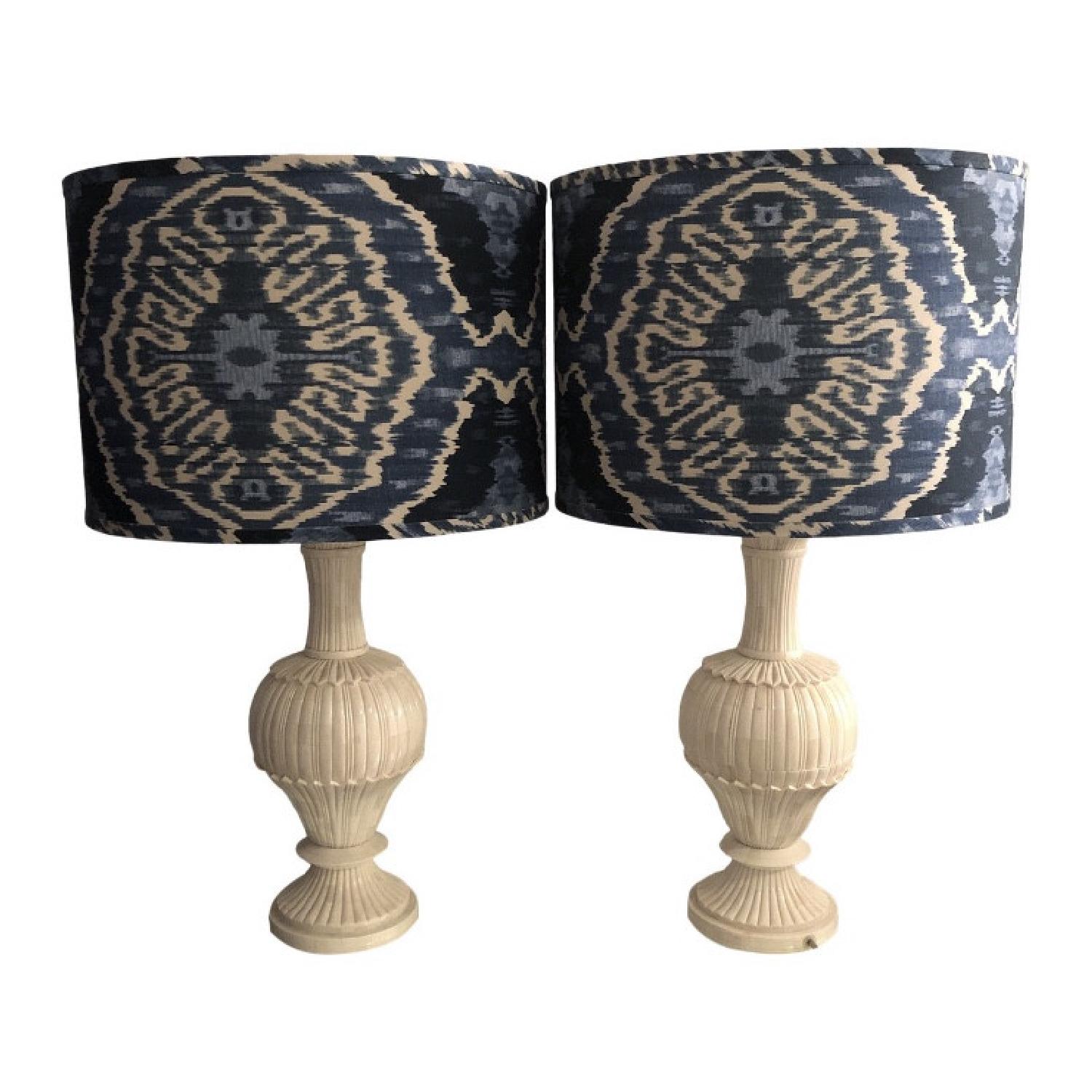 Crate & Barrel Ivory Shell ikat Table Lamps - image-1