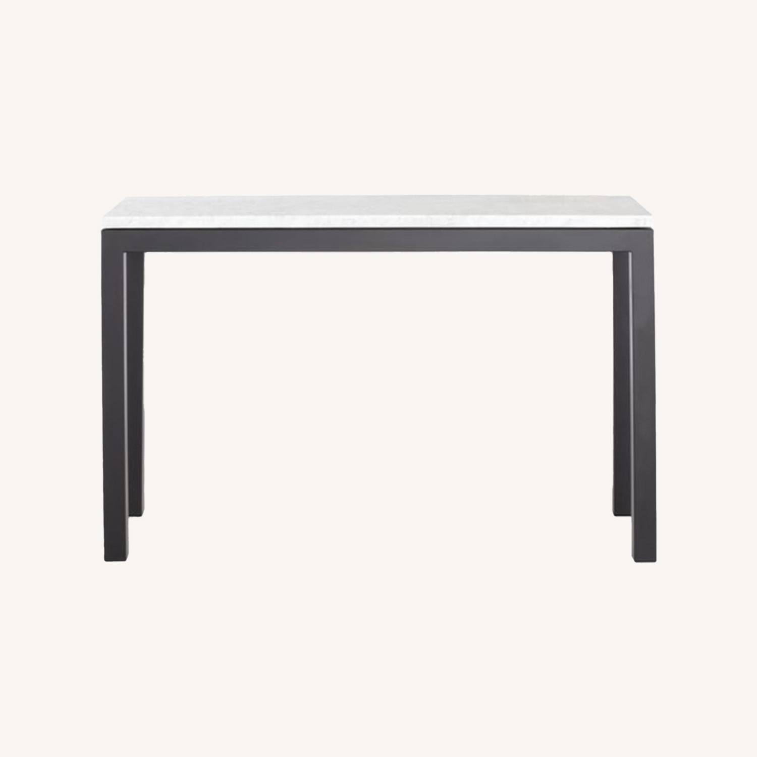 Seller's Notes:Crate & Barrel Parsons Marble Top/Metal Steel Base console table. I bought it at Crate & Barrel but it no longer appears on the C&B website so I included a link showing the product on another website. It’s in good condition. Very sturdy. Marble is beautiful.
