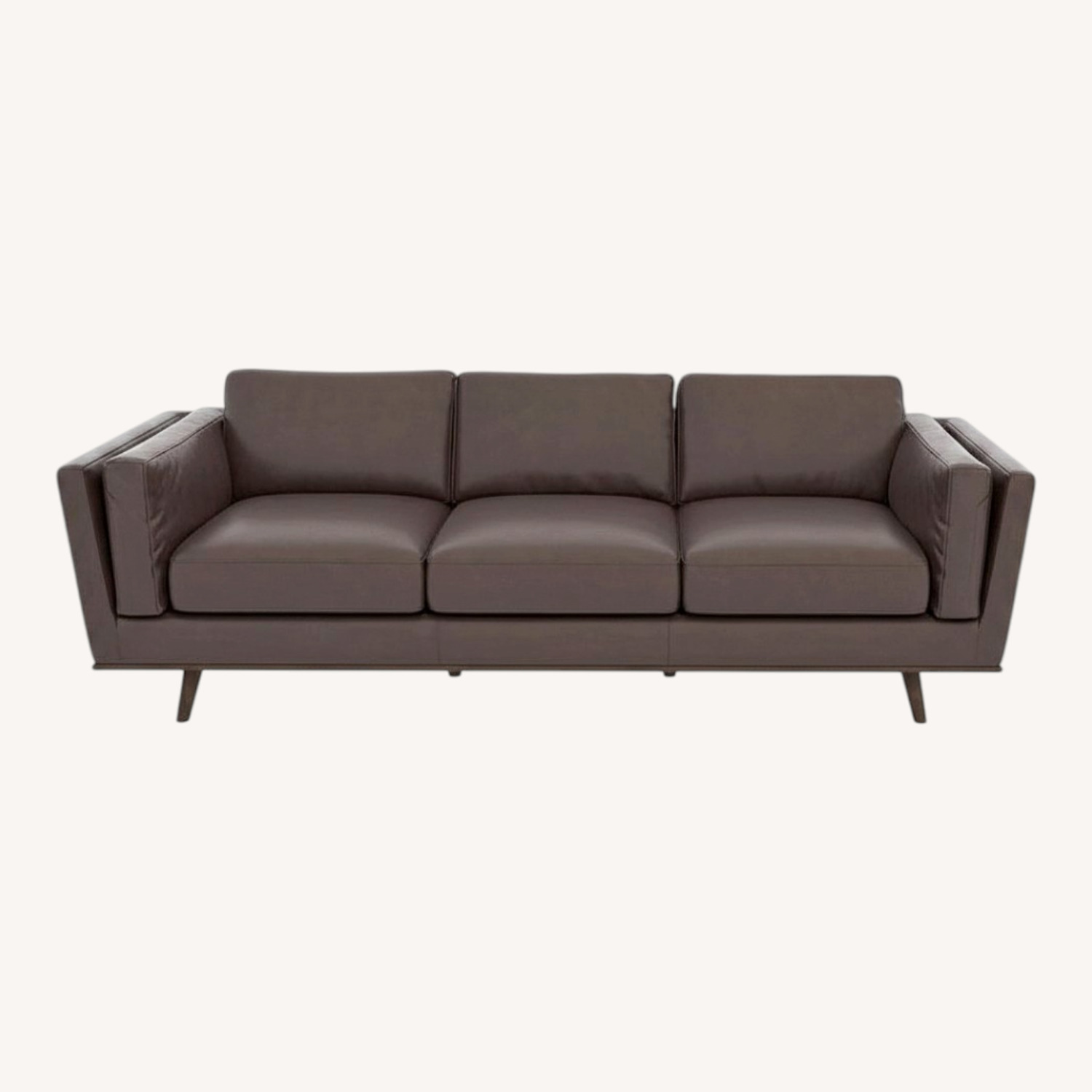 Seller's Notes:Dark brown leather sofa in like new condition, out of the box. Clean, modern design with comfortable cushions. It comes well packaged for safe delivery.