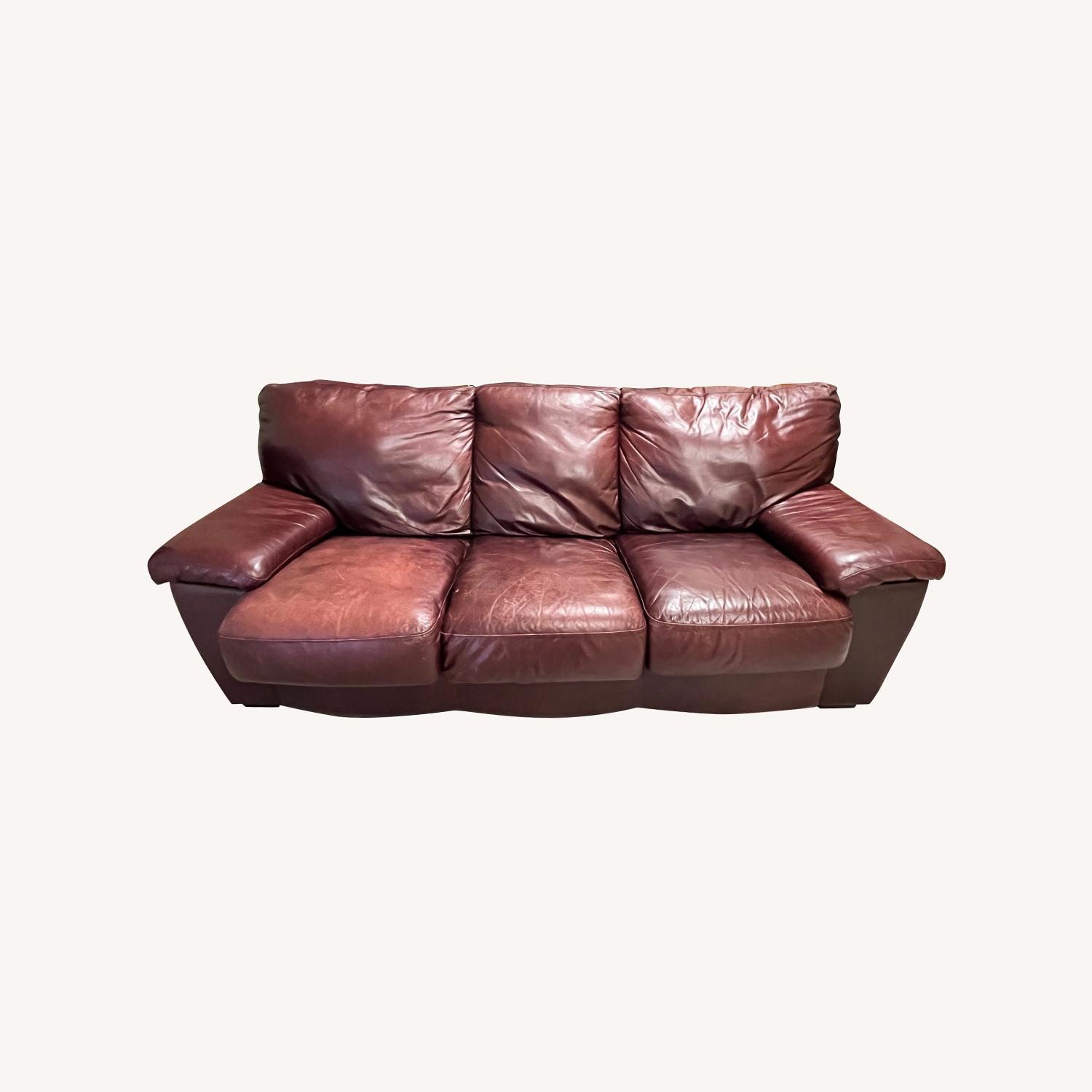 Seller's Notes:Dark brown leather couch, relatively new with no wear and tear or blemishes. Exposed to cats, but has been cleaned since being moved. Couch cushions have been moved into storage to ensure no damage or odor, but will be included in purchase; and look exactly like the back cushions.