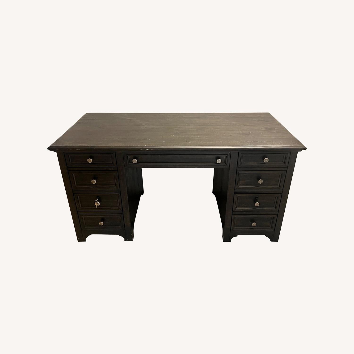 Seller's Notes:Used Valencia Executive Desk Bought 2 years ago and has seen regular use Selling because I’m moving. Asking $800 obo The desk surface has some cuts and pits but all fixable. One of the desk drawers has a key missing No pictures of inside the drawers because there is still some stuff inside but they are all clean and no sign of rough use Dimensions: 60ʺL × 28ʺW× 31ʺH Pickup will have to be from a third floor apartment.