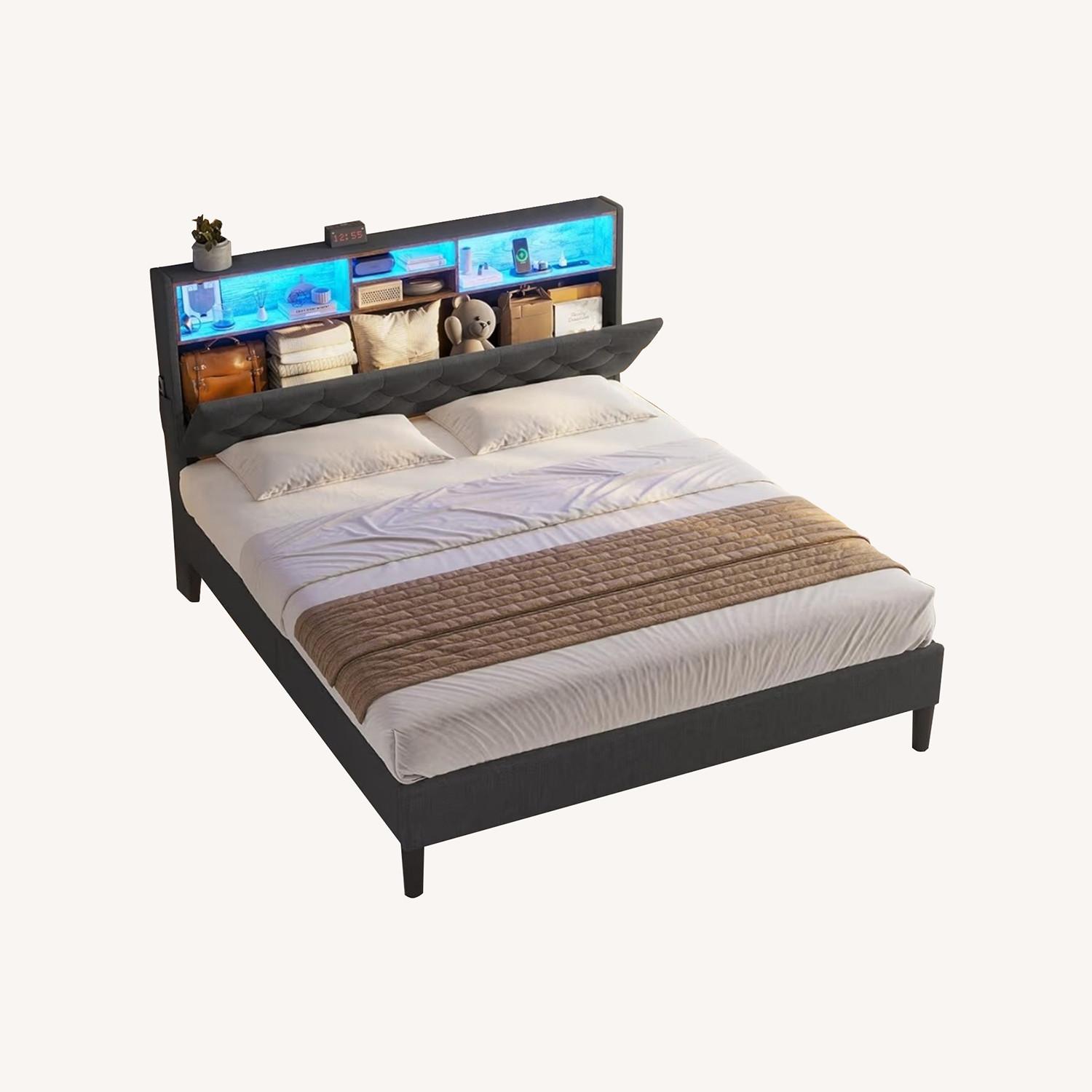 Seller's Notes:Amazing Full size bed frame with headboard storage and LED lights and remote