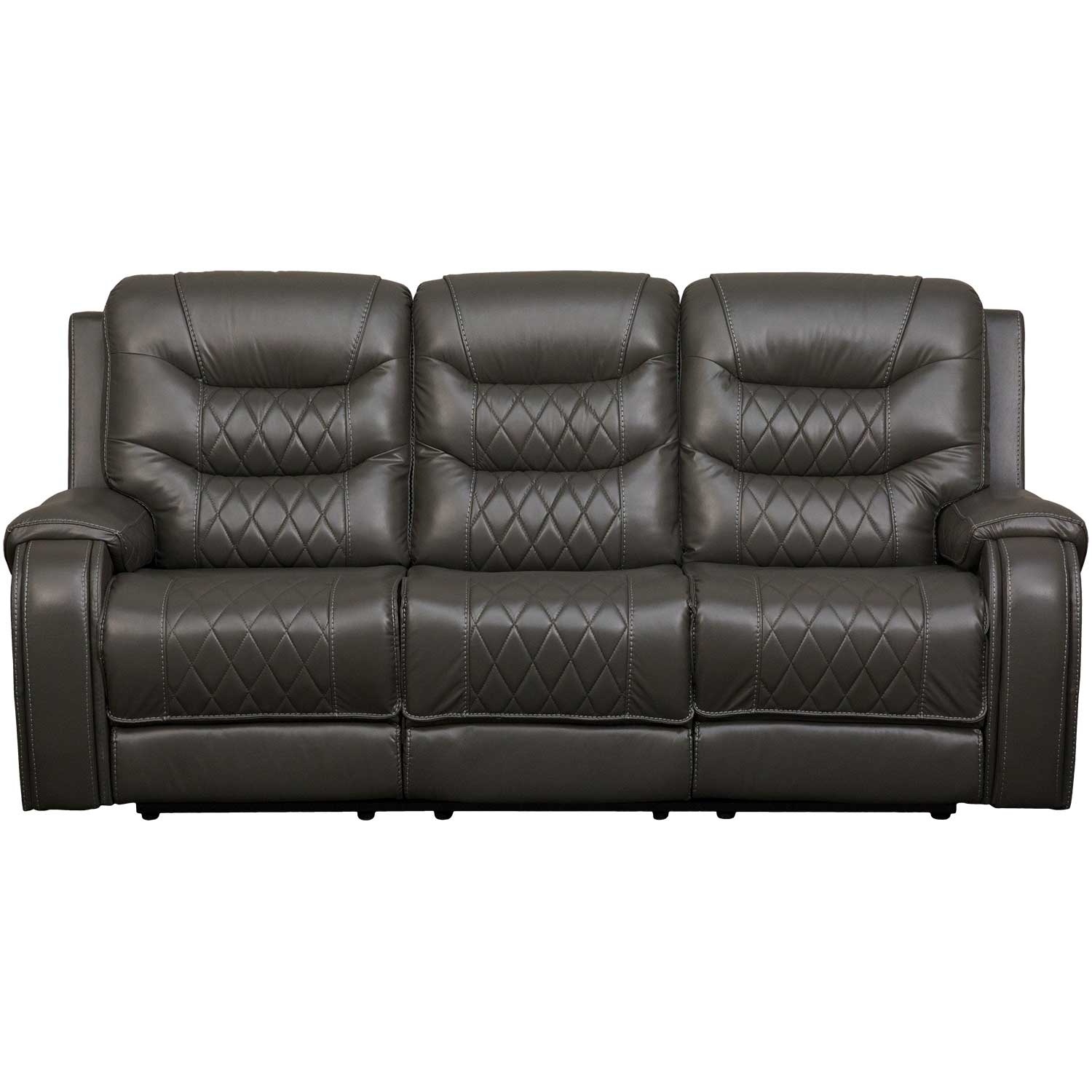 Raymond Reclining Sofa from Condor Manufacturing. Frame constructed from hardwoods and furniture grade plywoods. Quality foam cushion core construction. Covered in a gray durahide fabric featuring quilted application. Reclining mechanism offers infinite comfort possibilities.