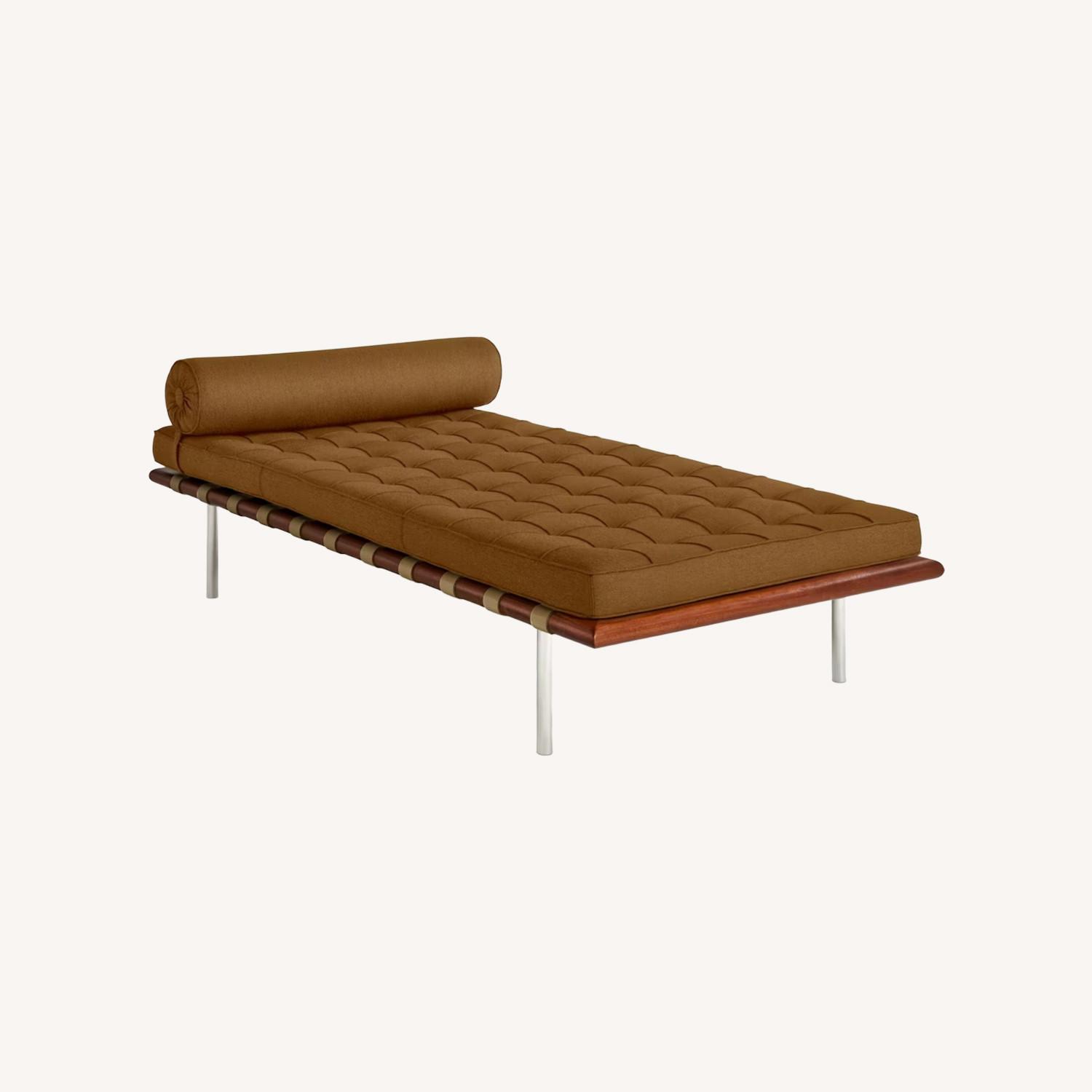 The Barcelona Couch (1930) by Ludwig Mies van der Rohe continues to endure as an icon of modernism and master craft. It’s upholstered using a single Spinneybeck cowhide and supported by an African mahogany sapele hardwood frame and stainless steel legs. To create the deep, precise tufting, individual panels of leather are cut, hand-welted and hand-tufted. The Barcelona Couch is a registered trademark of Knoll, Inc., this is the authentic Barcelona Couch by Knoll.