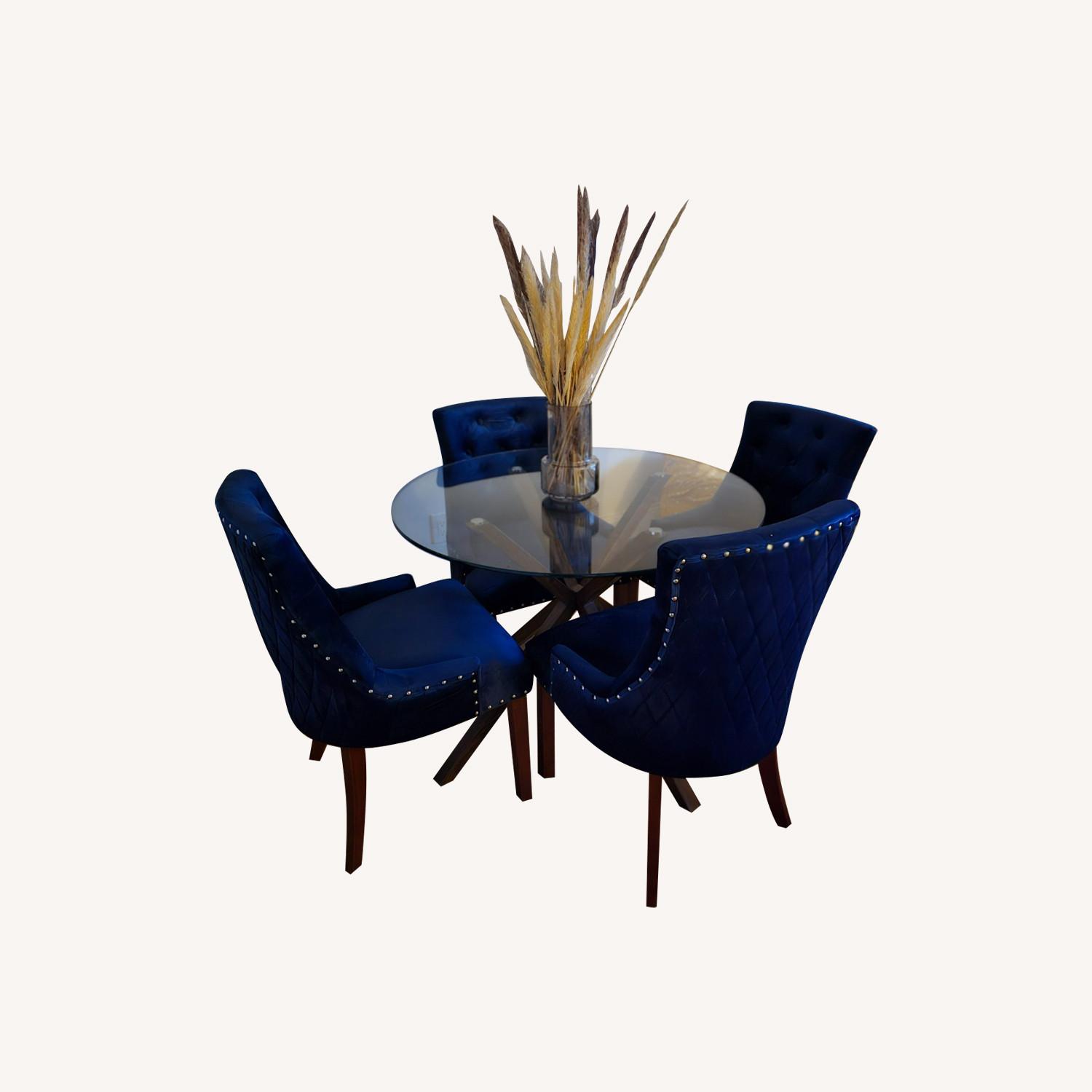 Seller's Notes:Beautiful Glass Dining Room Set 4 Velvet Blue Chairs