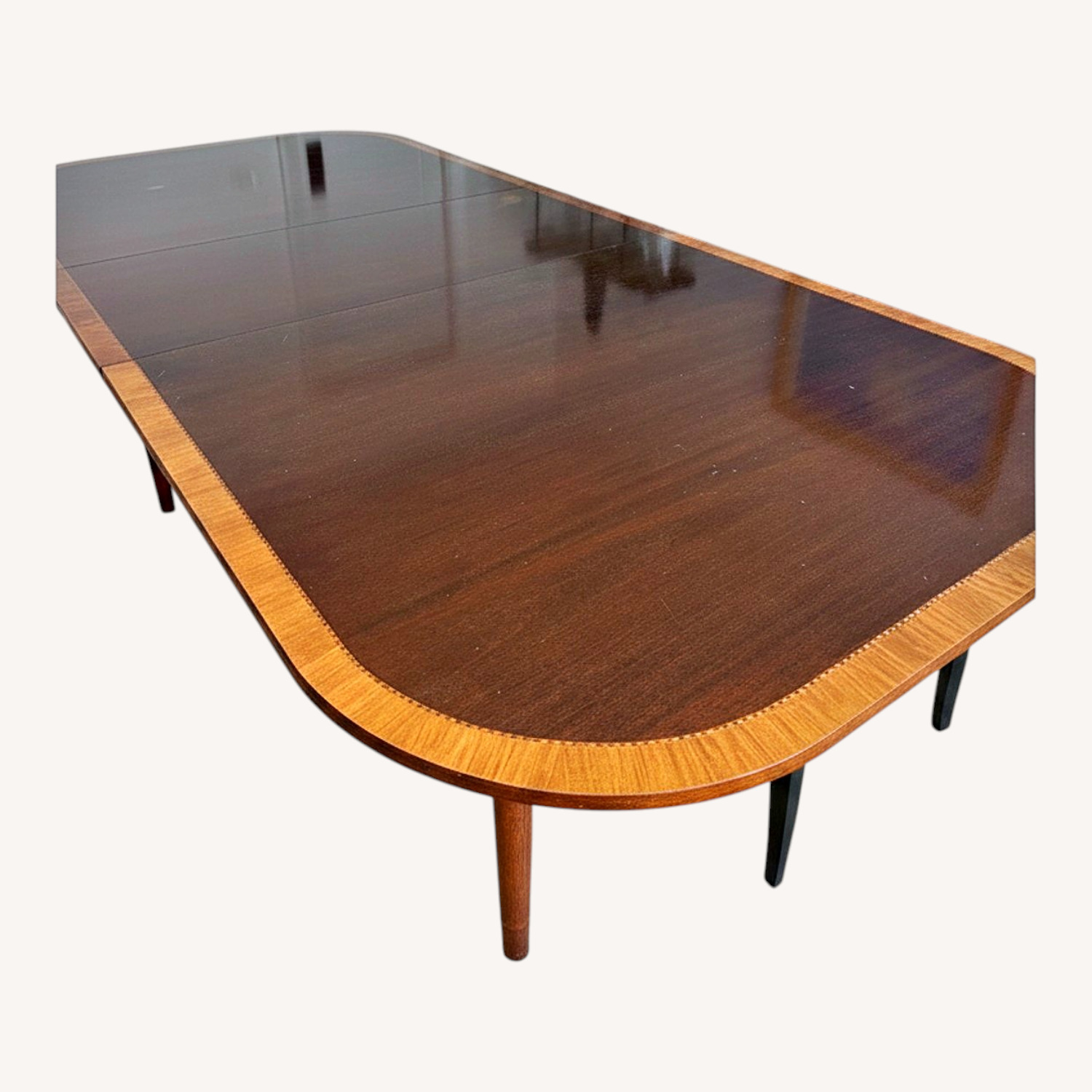 Seller's Notes:Beautiful table that has served my family well. Many large gatherings (up to 20+ seated) and also intimate dining for 8 when only 2 pedestals are used. The table has normal wear and tear and looks very elegant when the table settings are laid whether for formal occasions or casual family dinners. I am sad that I cannot take this table with me, we are downsizing and I will not have a dining room that will accommodate the table. The width of the table is 51 3/4". Could be refinished. I bought the table for $10,000 35 years ago and would estimate that designers would charge $18,000-$20,000 for same table in perfect condition today.