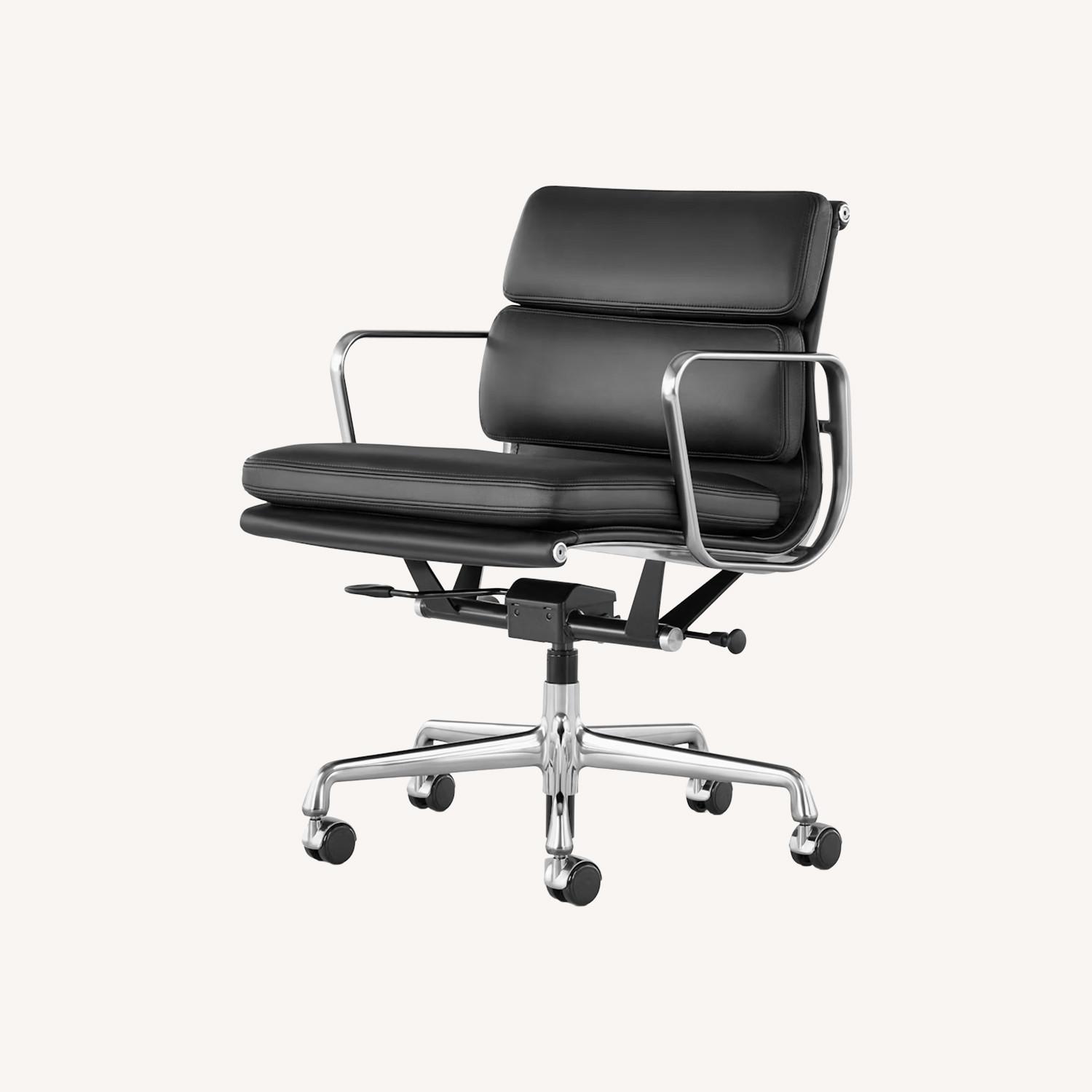 One look at the Eames soft pad office chair, and you'll see echoes of its predecessor, the iconic Aluminum Group Collection. A contoured aluminum frame bolsters plush, 2"-thick cushions that you'll sink right into and never want to leave. The height-adjustable frame on this soft cushion office chair has options for pneumatic or manual lift.