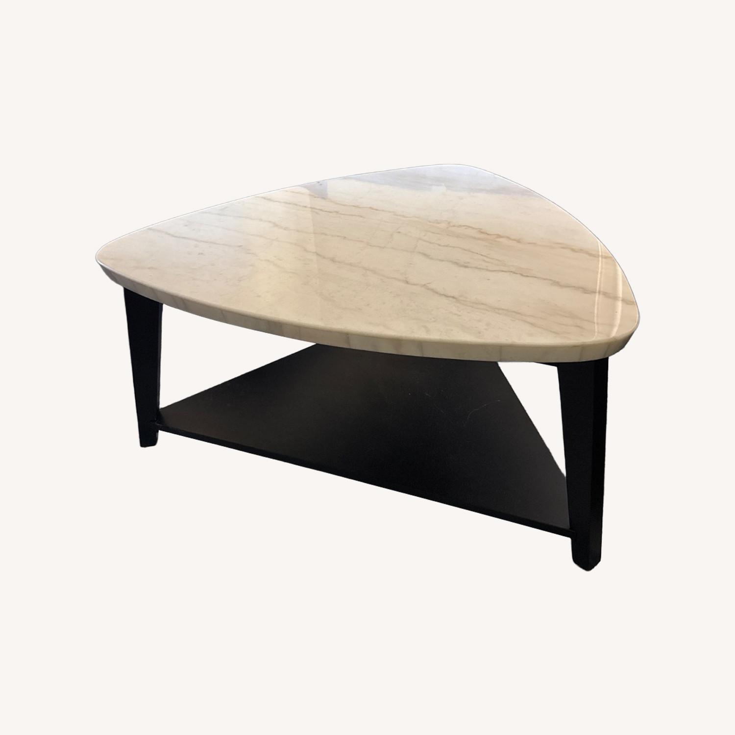 Seller's Notes:Elm Espresso & Marble Triangle Coffee Table from Bob’s Discount Furniture. Not even a year old.