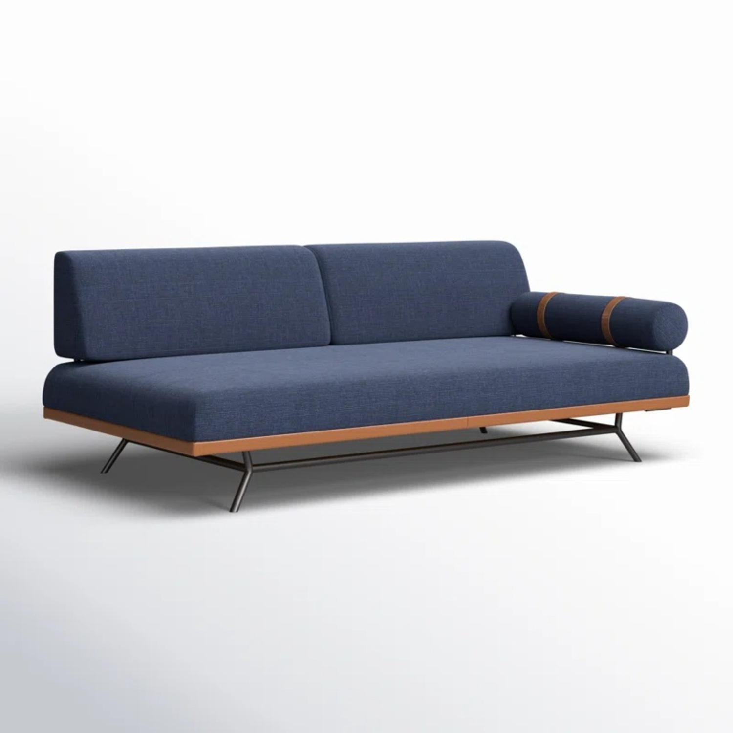 This convertible sofa is all about versatility and modern style. It features a sleek, minimalist design with loose back cushions and pillow-top arms that you can rearrange or remove to suit your needs. Upholstered in a polyester blend, it sits on slender metal legs in a subtle black hue. The solid wood frame and foam fill provide a comfy spot for two, whether you're lounging or hosting overnight guests. Plus, it's water-resistant, making it a practical choice for everyday life.