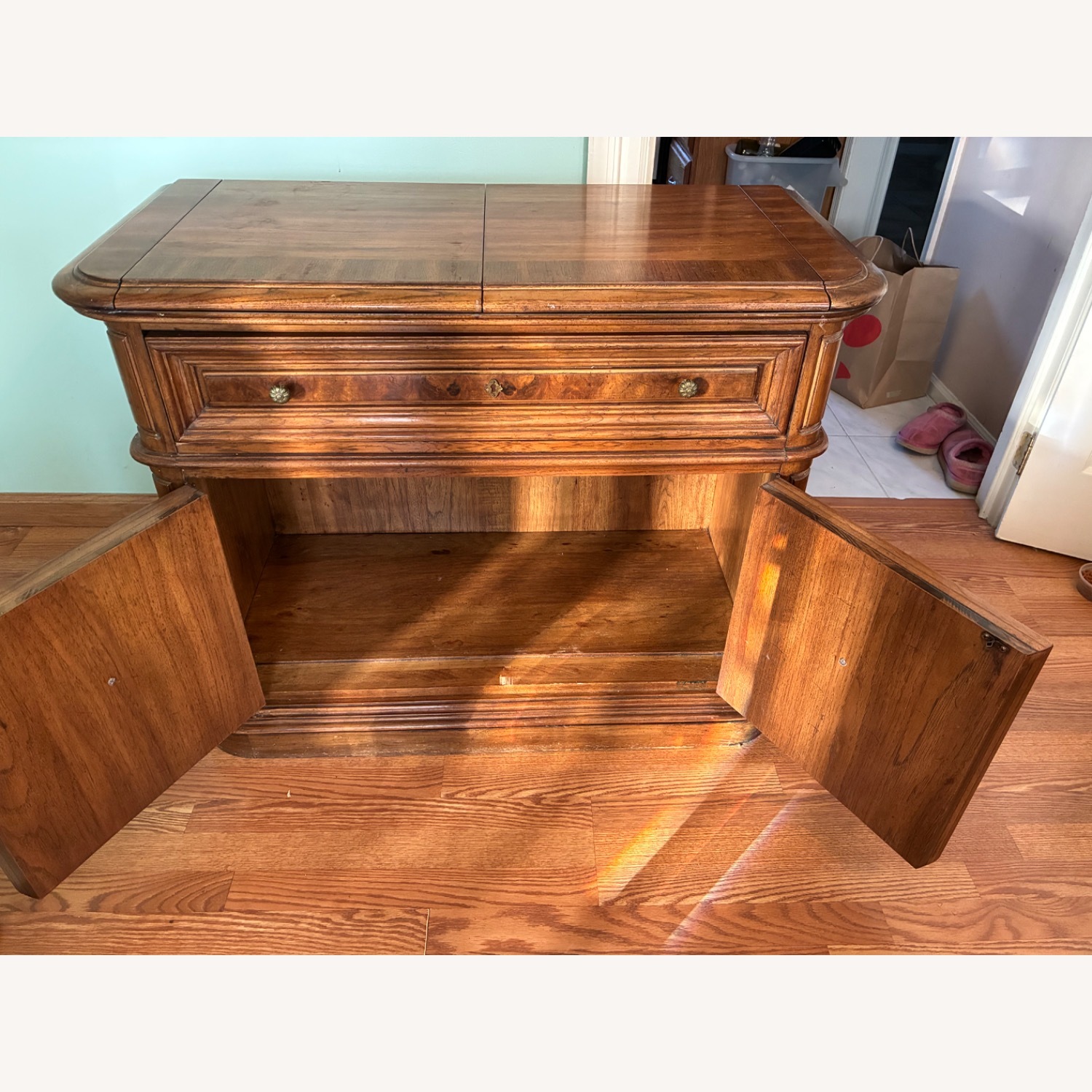 Seller's Notes:Beautiful Empire server. Extends to a lengthy 64.5 inches. A beautiful decor to any dining room to hold warm dinner entrees for ease of entertainment!