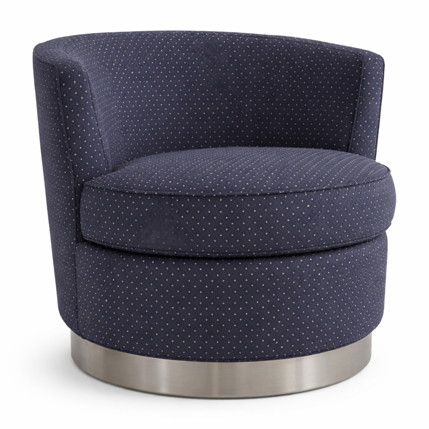 Seller's Notes:Purchased from Ethan Allen - very comfortable swivel armchairs. Fabric is a blue with gold/yellow accent in the dots. The fabric on the seats are a little worn and there are spots on the back of the chair where the fabric has pulls.