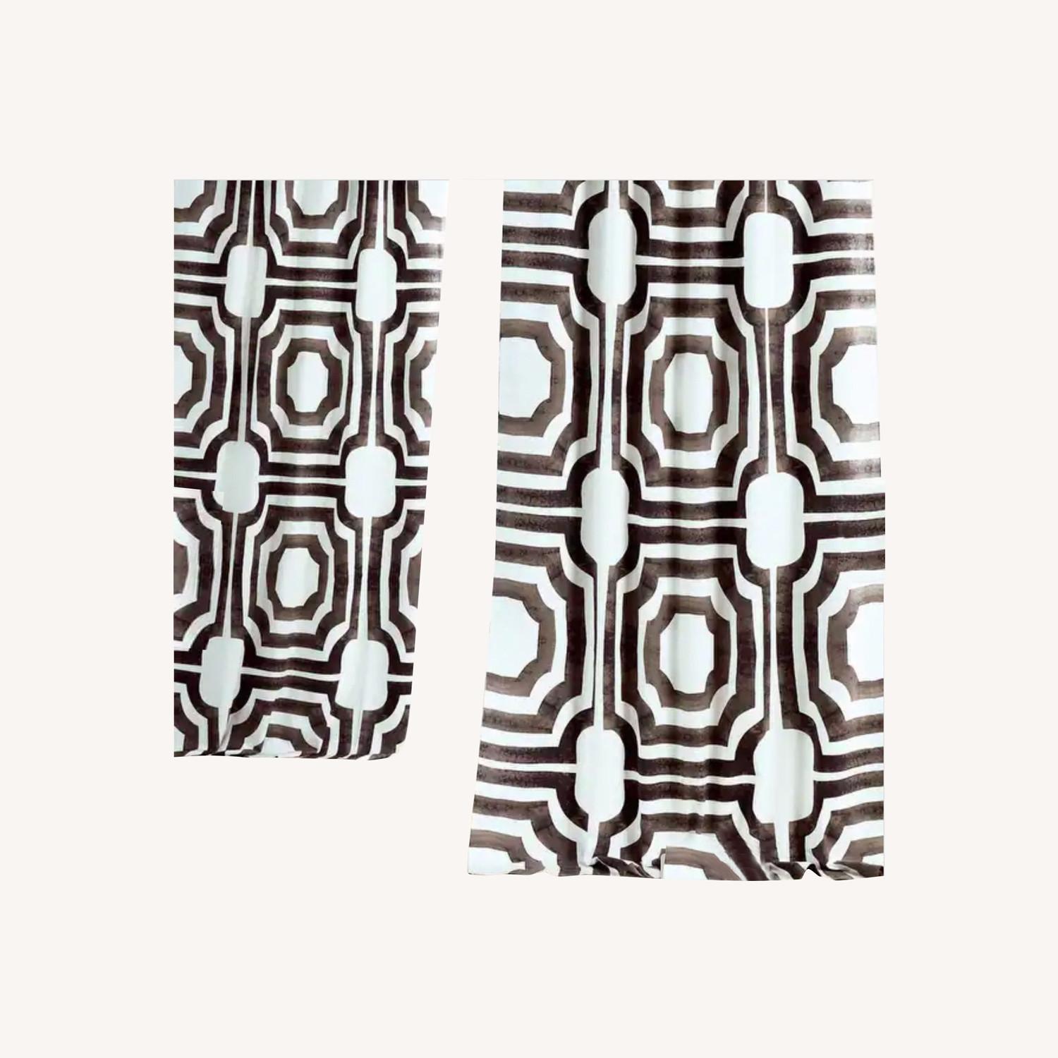 Seller's Notes:These are GREAT curtains - apart from having been washed, there are no stains, no signs of wear and tear. They are pristine. Curtain rod goes through the top and is hidden by fabric except at the very ends. at 84" long they are perfect for atop a radiator. 2 individual panels per order - with two sets available - purchasing both will cover 2 windows.