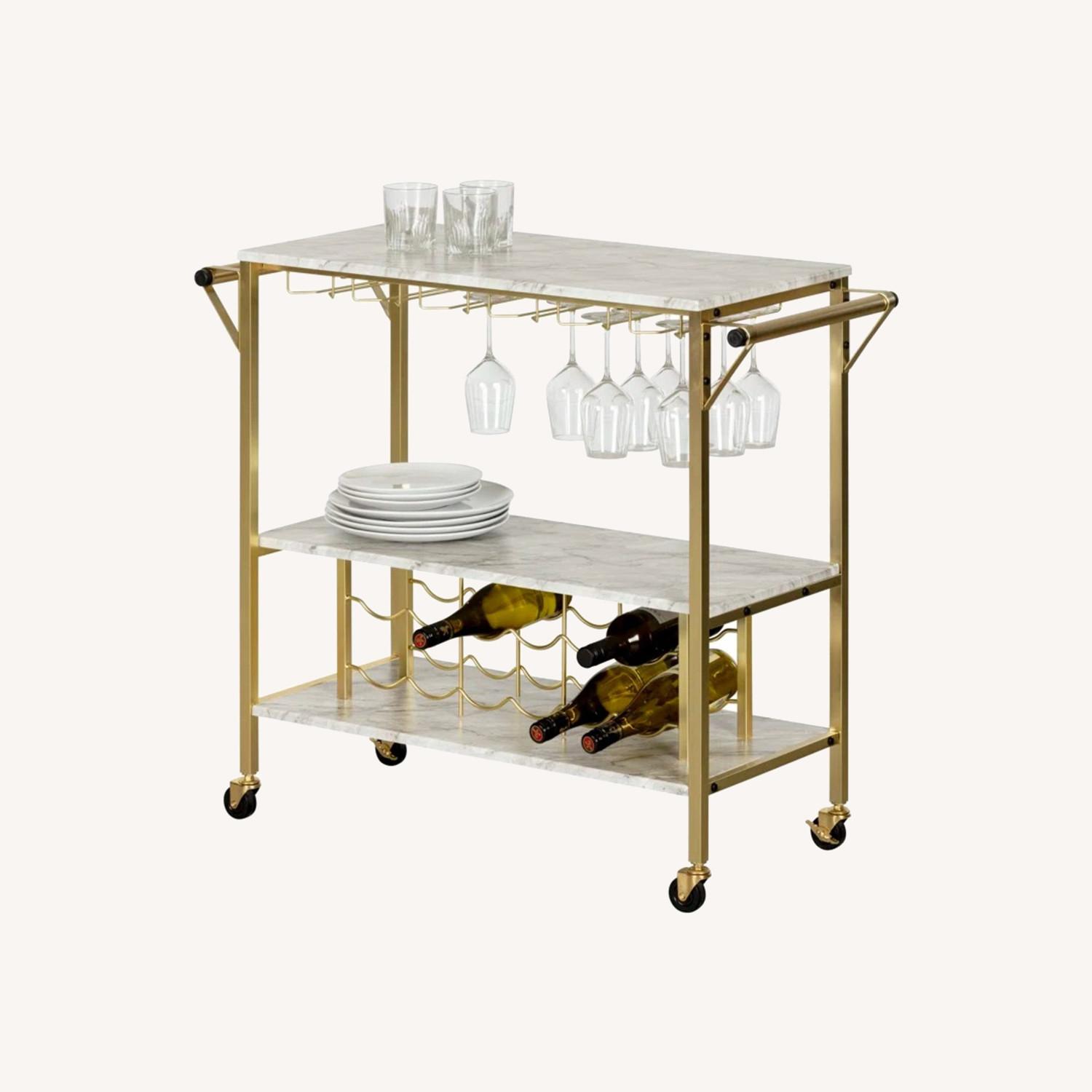 Collection: Maliza Bar Cart Bottle Storage and Wine Glass Rack-Faux Marble and Gold
