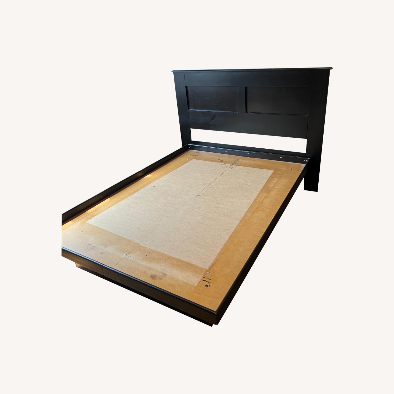 Seller's Notes:Gothic Cabinet Craft Platform Bed & Headboard (ESPRESSO FINISH) Pine Wood Platform Deck - 56"W x 77"L x 3"H (Platform height to where the mattress rests is 12") Platform Base - 48"W x 64"L x 12"H Headboard - 2½"D x 61½"W x 46"H https://www.gothiccabinetcraft.com/bedroom/beds/full/full-platform-bed-pine-wood/ https://www.gothiccabinetcraft.com/bedroom/headboards/full/full-queen-panel-2-x-61-x-46-pine-wood/