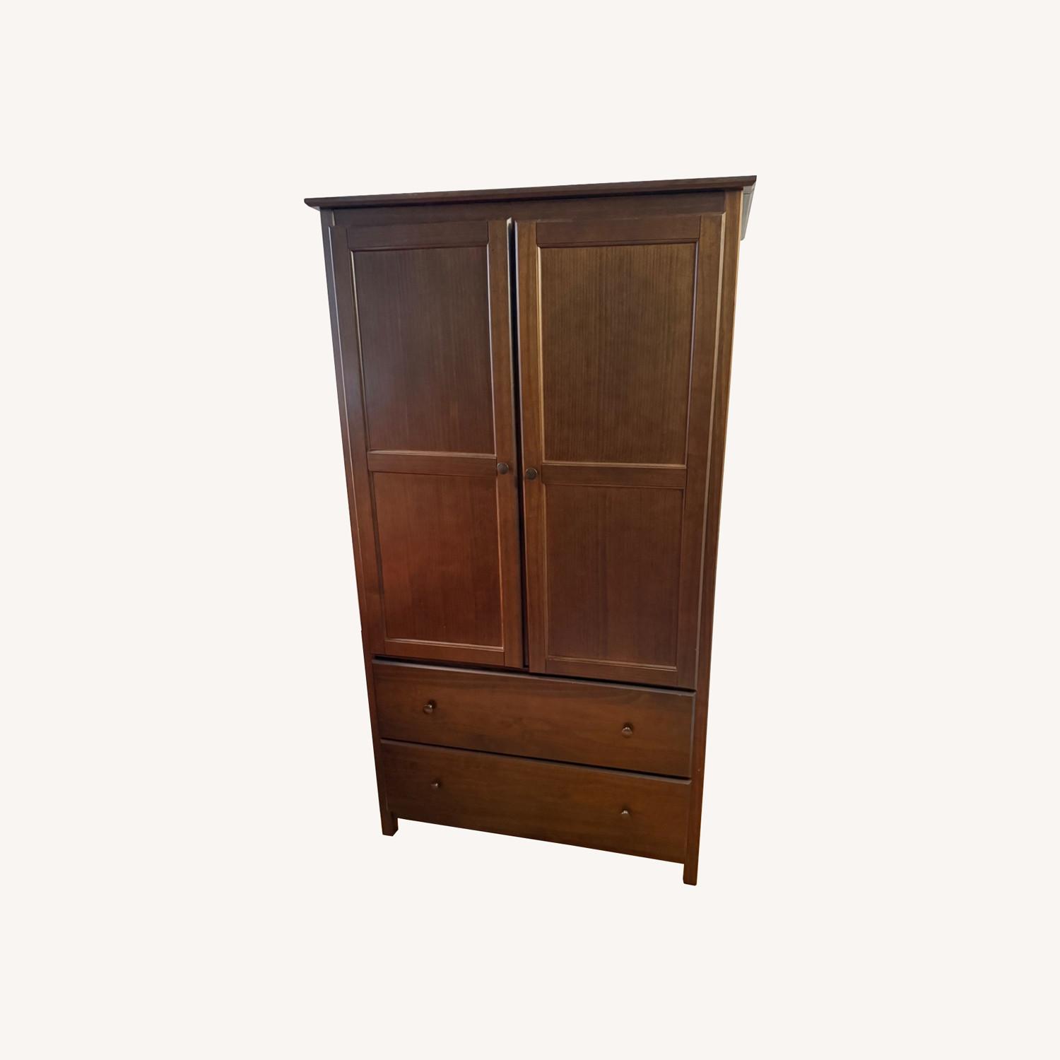 Seller's Notes:Add a touch of elegance to your bedroom with this stylish and spacious Shaker-style armoire. Crafted from 100% solid pine wood sourced from renewable forests, this wardrobe features two large doors, two deep drawers, and attractive metal knobs for easy access to your clothing and accessories. The sturdy construction ensures durability that lasts for years, while the water-based non-toxic paint guarantees safety and eco-friendliness.
