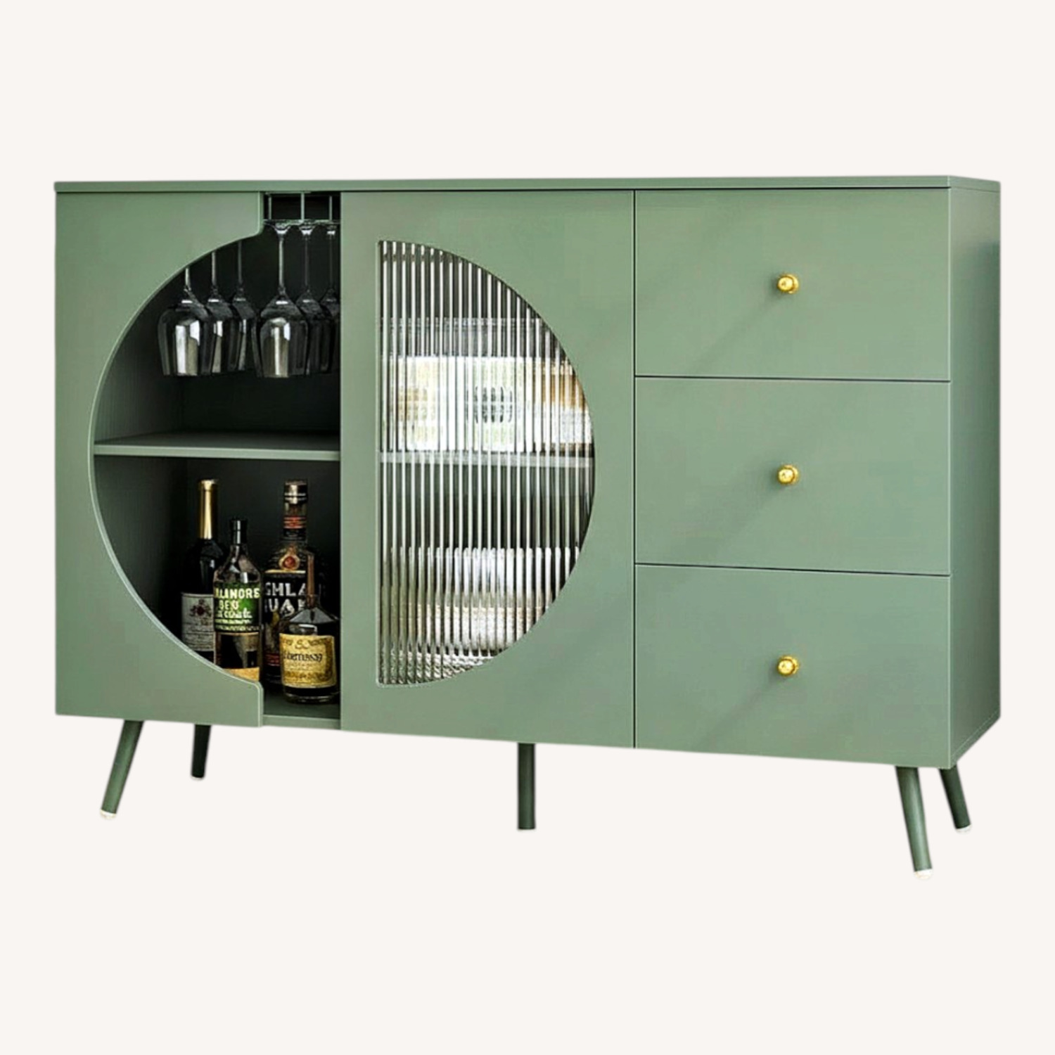 Green Sideboard W 3 Drawers & Wine Glass Holder
