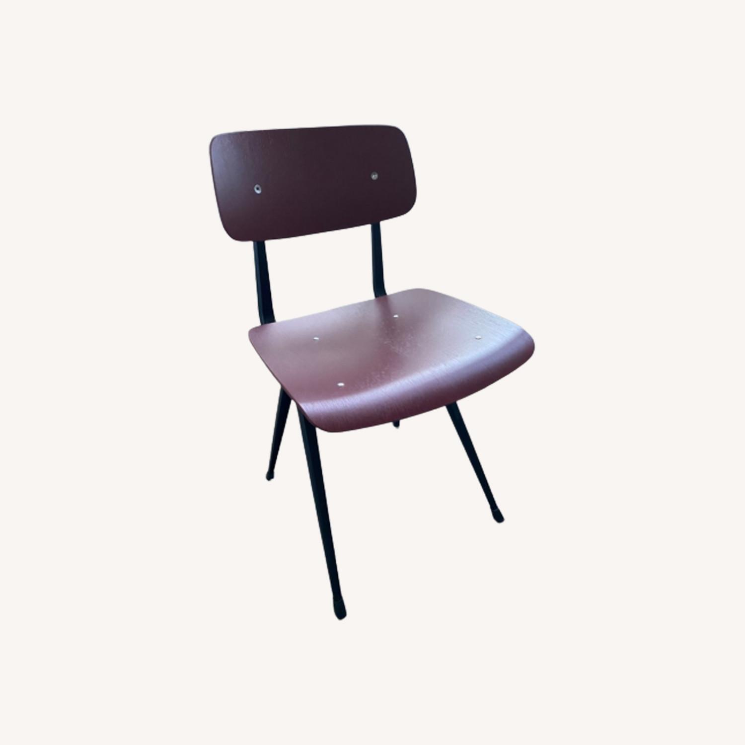 Seller's Notes:Pair of two chairs. The Result Chair features a thin steel-sheet base with a wooden seat and backrest, retaining maximum flexibility, lightness, and strength. Originally created by Friso Kramer and Wim Rietveld while working at Ahrend in the 1950s, the cutout steel collection has been relaunched by HAY together with Ahrend.