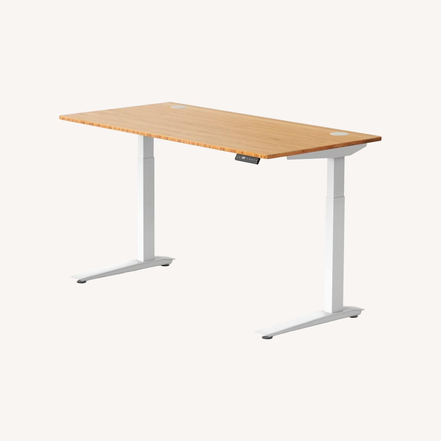 Seller's Notes:Tap into your flow with the all-in-one Jarvis Standing Desk. Designed to promote wellness and movement, Jarvis encourages a variety of sitting and standing positions throughout the workday with a customizable setup. Easily adjust the height of the bamboo tabletop with the push of a button on an up-down touch pad or an OLED programmable handset. With the option of a powered grommet, you can easily charge devices right on your desktop. This is the authentic Jarvis Standing Desk by the Oregon-based company Fully. Fully is a Certified B Corporation dedicated to enhancing the quality of your work and workspace with high-quality design. With an eye toward making a positive impact on customers, as well as the planet, Fully’s products are responsibly produced and packaged. Jarvis’s tabletop is made of bamboo, chosen both for its natural beauty and rapid renewability. The bamboo, which releases 35% more oxygen than an equivalent stand of trees, is grown without pesticides or fertilizers. When the plant is fully mature in just five years, it’s harvested by hand to preserve the root structure. Plus, Jarvis is shipped in 100% recyclable and EPE-free packaging. If selecting the grommet option, the white Jarvis Desk will ship with black grommets installed, and white grommets will ship separately.