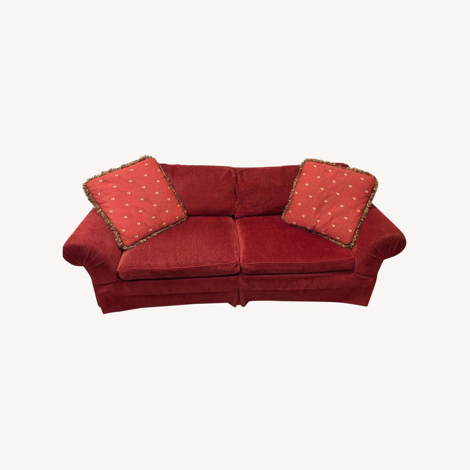 Seller's Notes:Fully upholstered Hickory Chair Company (Pearson line) couch. Comfortably sits 3, and can fit 4 people without too much of a squeeze. Professionally cleaned (couch upholstering, seats and pillows) in late 2023. Arm rests are nicely padded which makes it comfortable to sit or lay on.