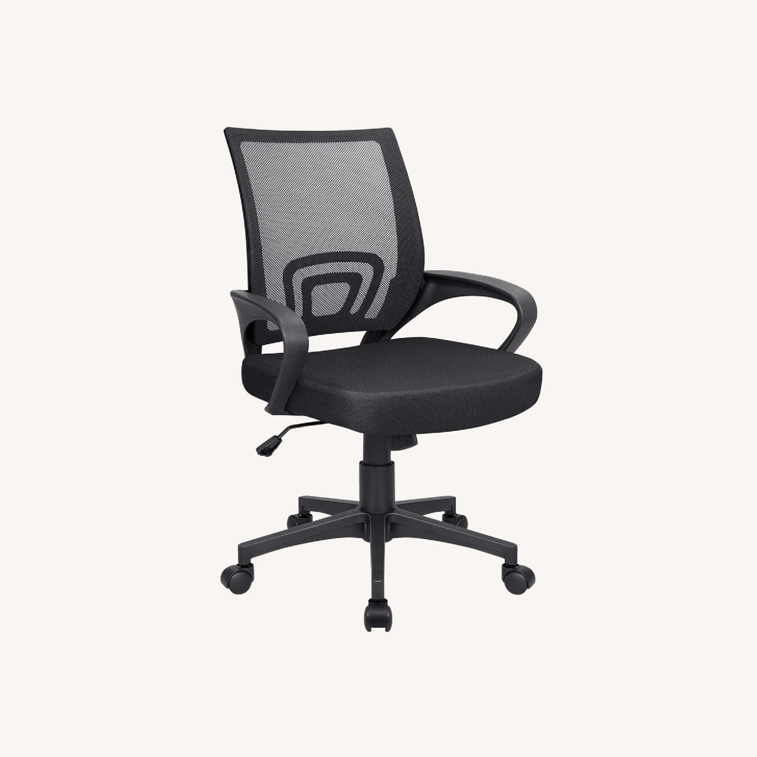 Seller's Notes:- Homall Office Chair Mesh Desk Black Chair Computer Chair with Armrest - Black colored desk chair - Condition of the office chair is still pretty good. Although the chair hasn’t been used often, there are signs of very slight scuff marks on the chair’s seat meshing from shipping - $30 for the chair - Available for pickup