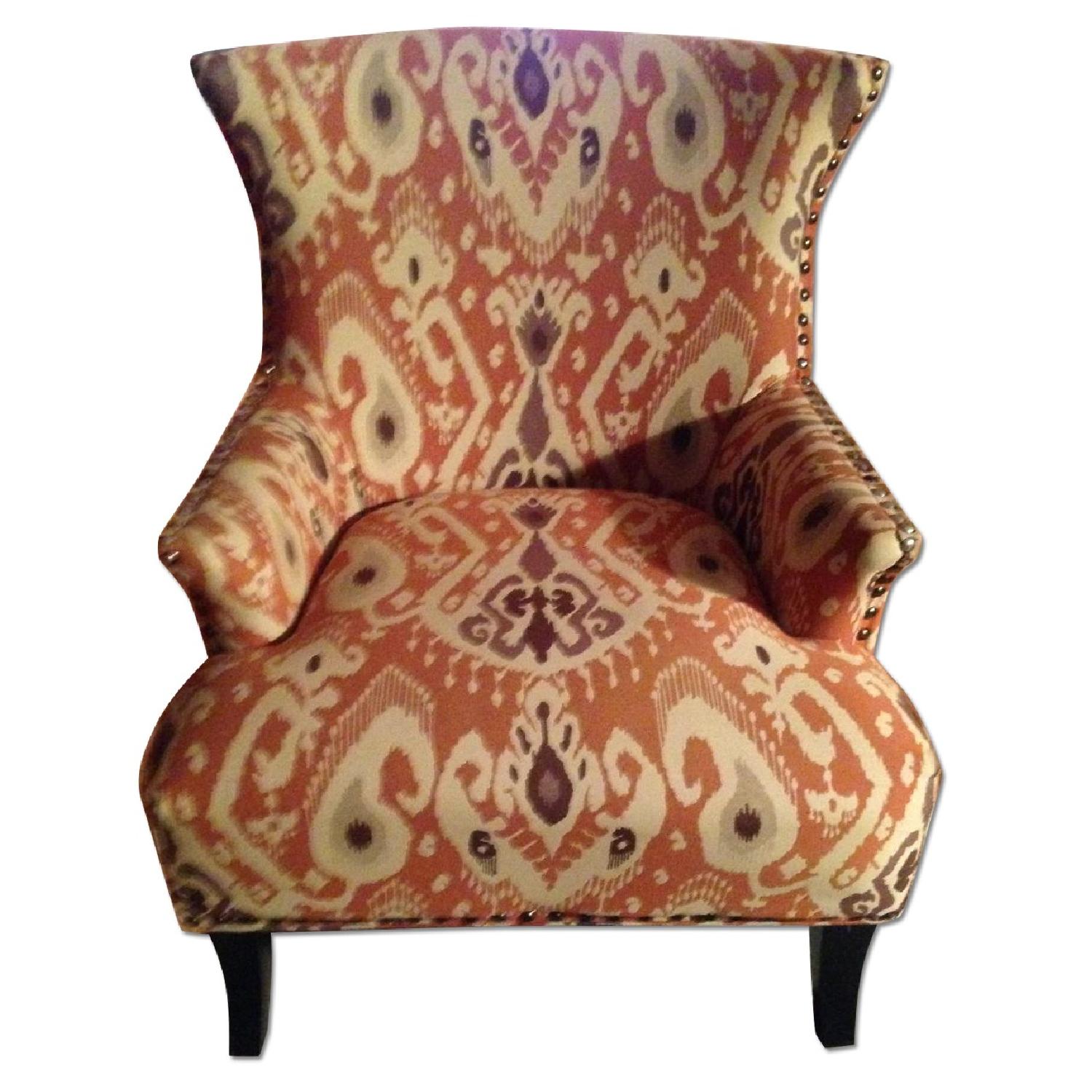 Seller's Notes:This is one of the most unique, beautiful and comfortable armchairs I have ever seen and am selling it only because I am moving abroad. I get compliments from everyone that sees it. There was only one in the store when I bought it and I have not seen another like it. It has hardly ever been used. It is in absolutely perfect condition except for a very small defect (I bought it this way) in which one of the legs is shorter than the others. It is such a small difference, however, it does NOT affect the way the chair stands or the comfort of the chair.