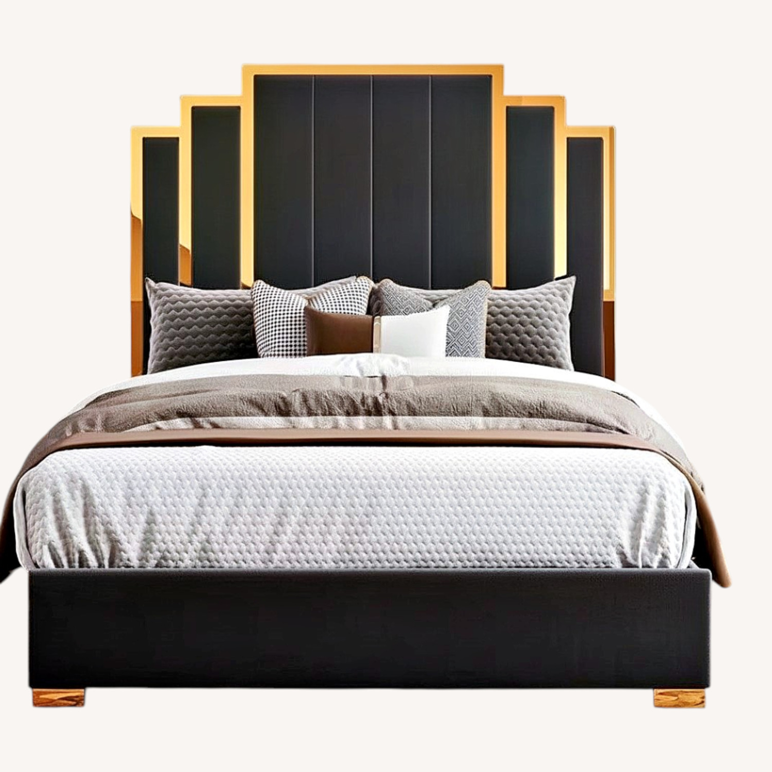 Unique Golden Metal Plating Craft: Layered rectangle framed headboard and legs are made of stainless steel in a shiny plating finish. Add extra beauty and focal point to your bedroom.