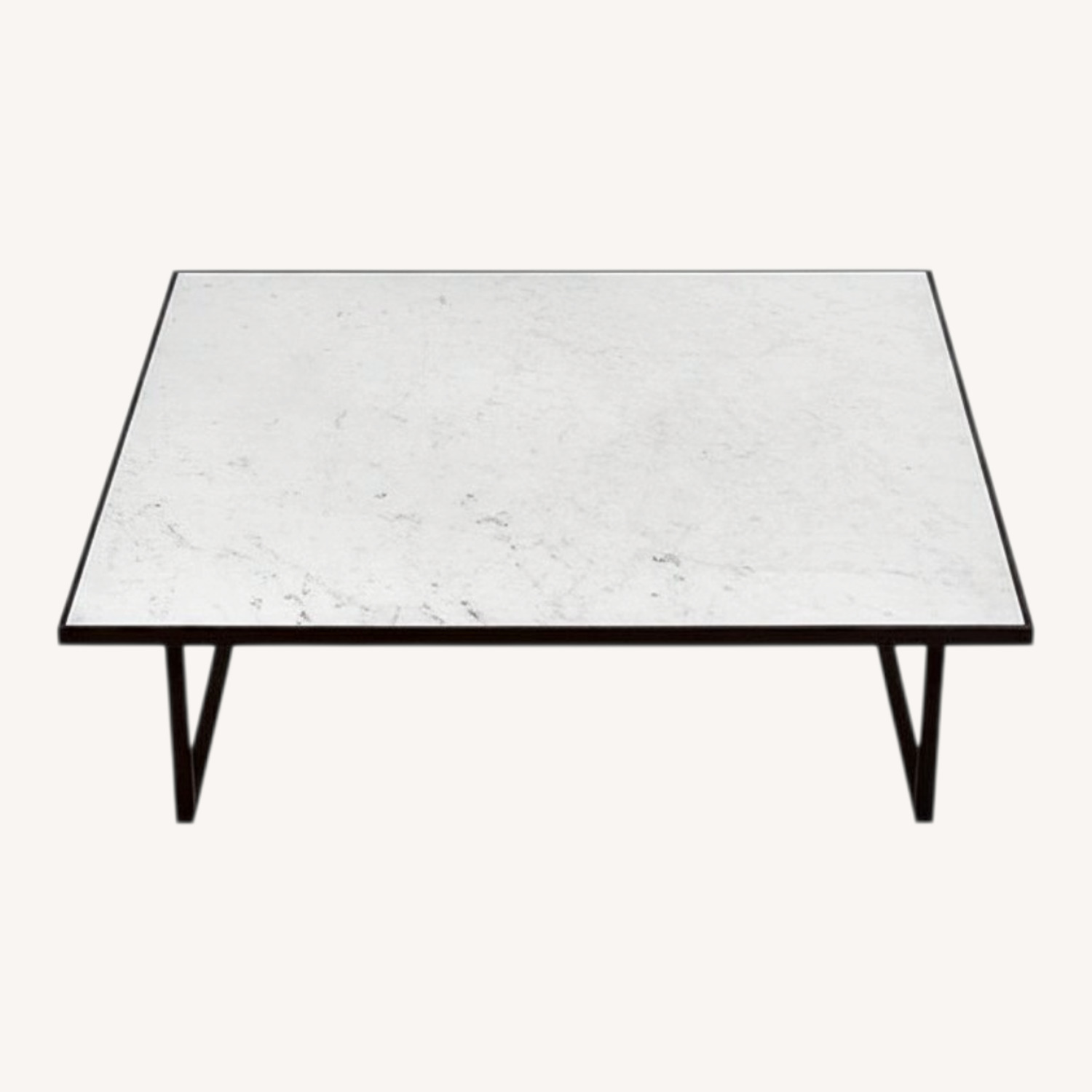 Seller's Notes:Icaro square coffee table with a structure in titanium finish and top in marble. In good used condition with some water marks but part of the patina of the table. 47.25”W x 47.25”D x 14.5”H Quick Ship Finishes: Matte Gioia di Carrara with Black Titanium Frame Grafite Marble Top with Black Titanium Frame Matte Emperador Marble Top with Bronze
