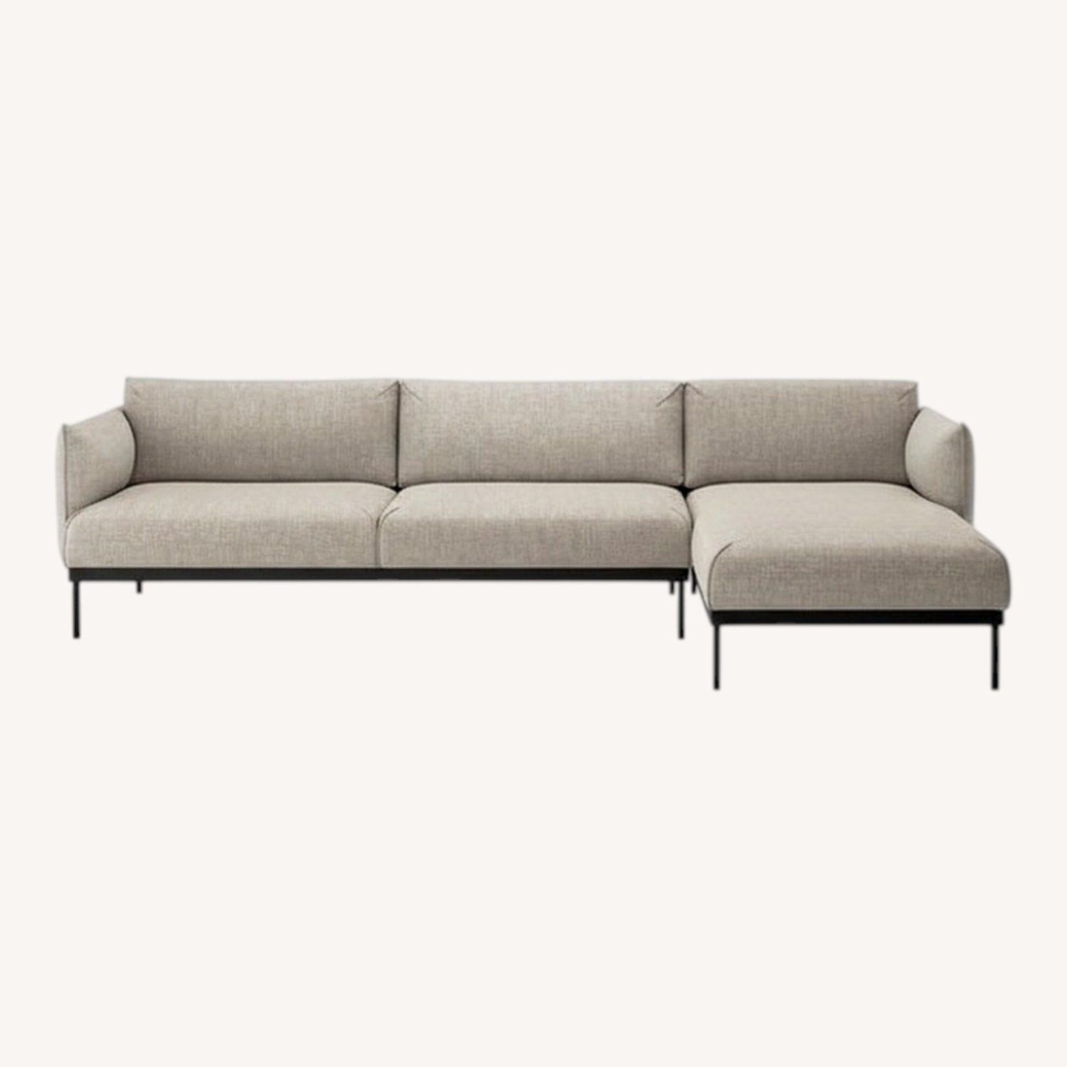 Seller's Notes:Light gray fabric with black steel legs - owned for 2 years This sofa is in great condition, firm seating and slim legs - The chaise longue can be placed either to the left or right, so you can adapt the sofa to your space and your preferences.