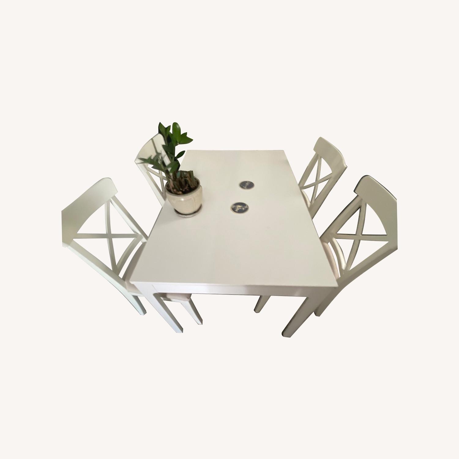 Seller's Notes:Dinner table and 4 chairs. Table is expandable and can sit up to 8 people easily.