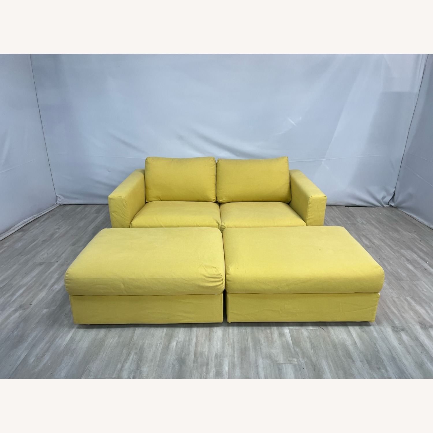 Seller's Notes: The Ikea Vimle Yellow Sofa with Ottoman Storage combines Scandinavian minimalism with everyday comfort. This thoughtfully curated collection features the Vimle sectional's clean lines and versatile design, paired with the ottoman for added functionality and relaxation. Perfect for modern living spaces, the set offers a cohesive aesthetic while providing flexible seating arrangements. Upholstered in quality fabrics, both pieces deliver durability and style, making them ideal for those who appreciate understated elegance and practical design solutions for contemporary homes.