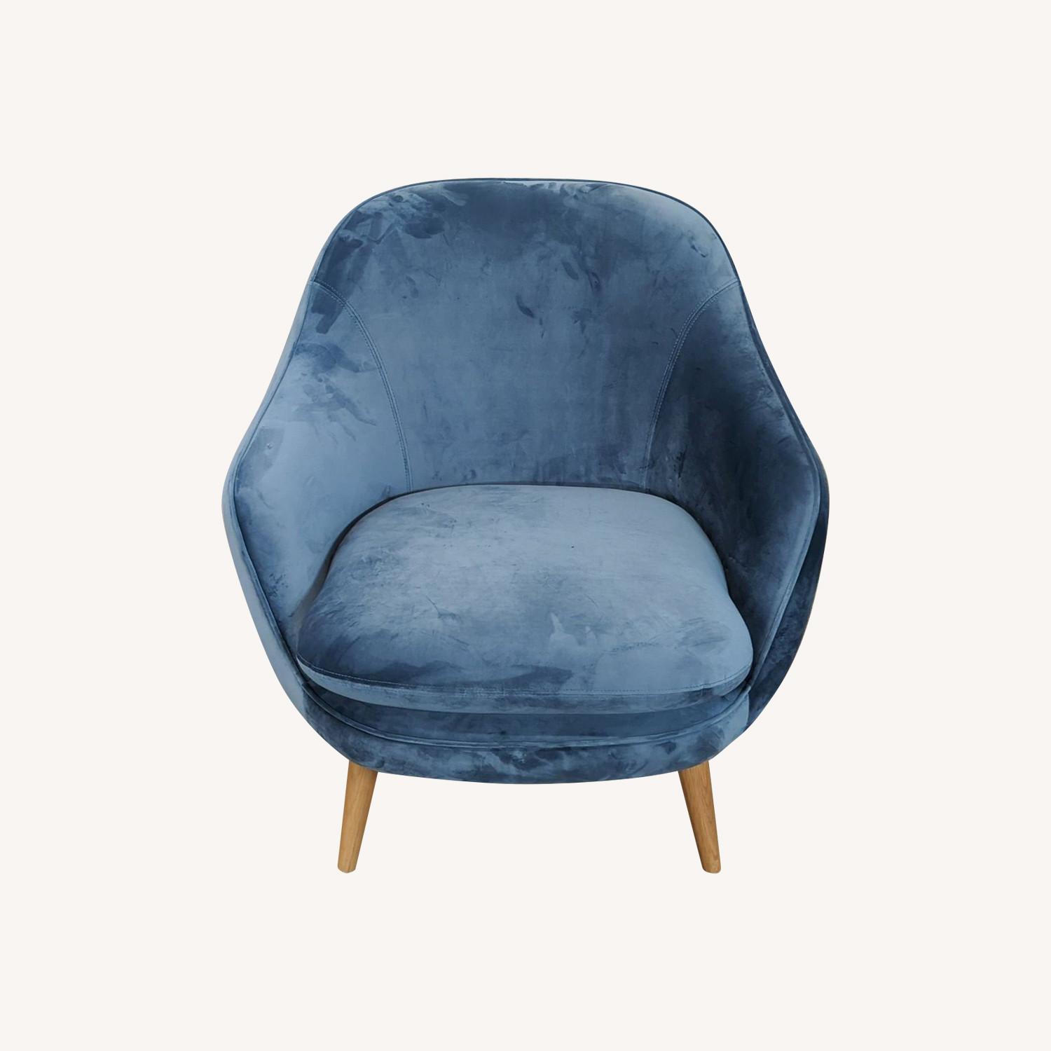 Seller's Notes:Features velvet upholstery in dust blue and wood legs.