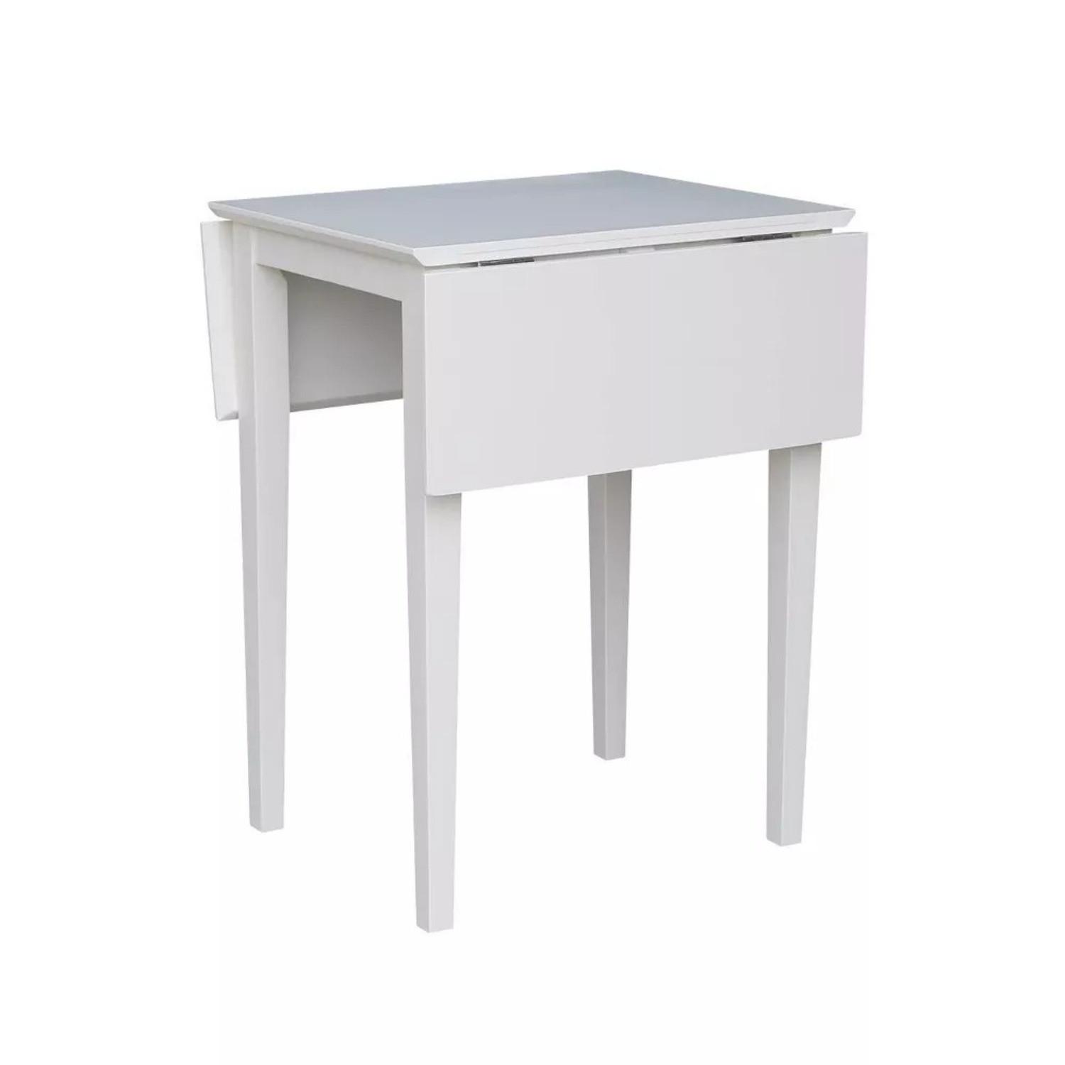 Seller's Notes:9 in. drop leaves on each side Floor to apron is 26.5 in. Solid rubberwood, an eco-friendly hardwood Density of rubber wood is comparable to that of birch or ash; its strength is rated the same as maple Table is 20 in. x 36 in. with leaves up; 20 in. x 18 in. with leaves down