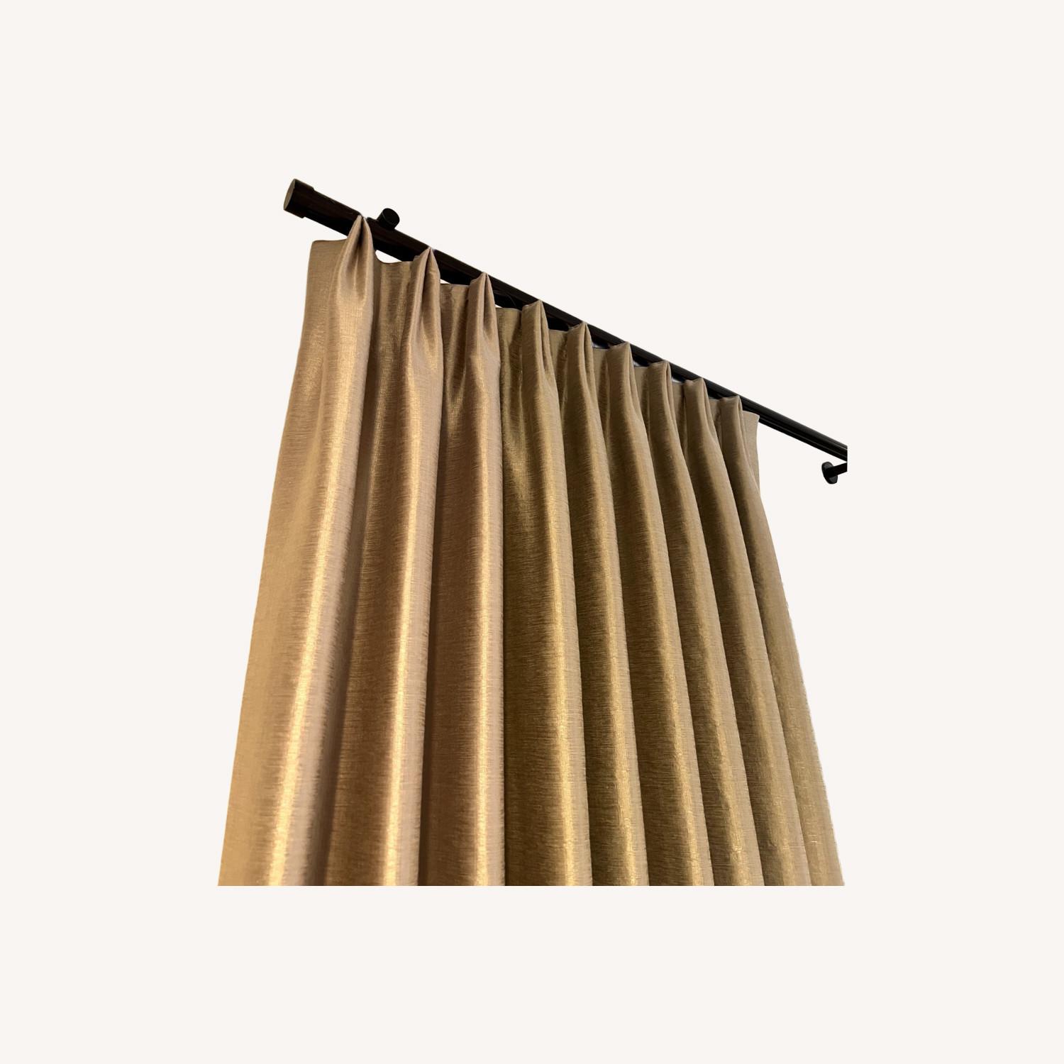 Seller's Notes:In color "swallow". Each window has 2 drapes, (1 set). I have 3 sets. RODS INCLUDED. Rod dimensions; about 75" wide.