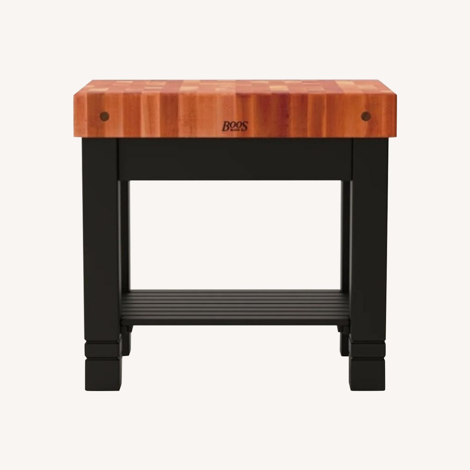 Seller's Notes:The distinctive blend of warmth, beauty and function found in this Boos Bloc de Foyer Island makes it a vital addition to you home. Whether you need extra space in the kitchen or a stylish piece of furniture for your entryway, this butcher block won’t disappoint. The hypnotizing checkerboard cherry surface consists of warm red and brown colors. With a solid 5″ thick butcher block top, the end grain American cherry wood provides an extremely strong surface for chopping. Also featured with this 36″x24″ island is one slatted shelf and hidden drawer in the apron giving plenty of extra storage for kitchen supplies, appliances or decor. If you are looking for the perfect balance of warmth and style, then this island is for you!