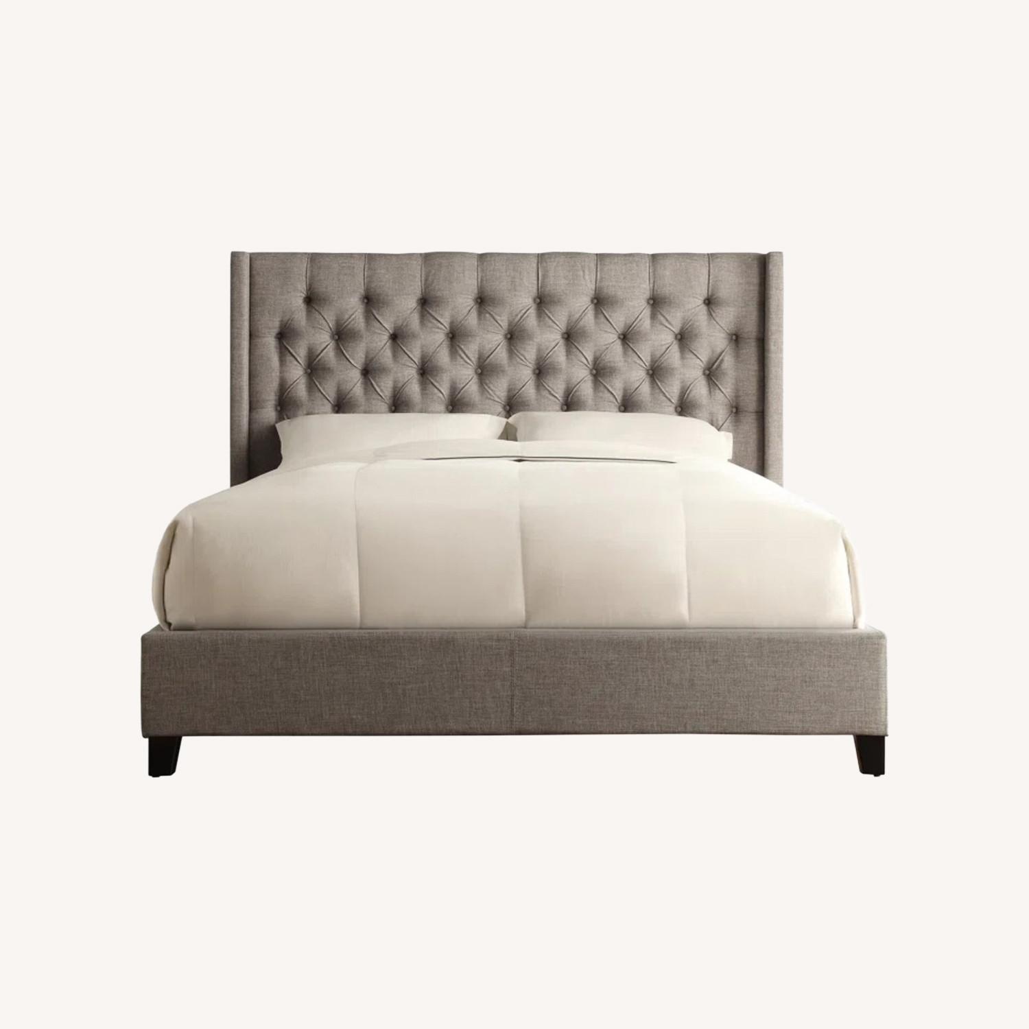 This upholstered bed adds an eye-catching focal point to your bedroom. It has a solid and engineered wood frame that rests on tapered front legs. Wrapped in linen fabric, it comes in a muted tone that works with a variety of styles and color palettes. The headboard strikes a rectangular silhouette with subtle wingback sides for a classic look we love. Foam padding provides extra cushioning as you enjoy some reading before going to sleep, and button tufting rounds out the design. Center legs and slats help support your box spring and a mattress of your choice (sold separately).