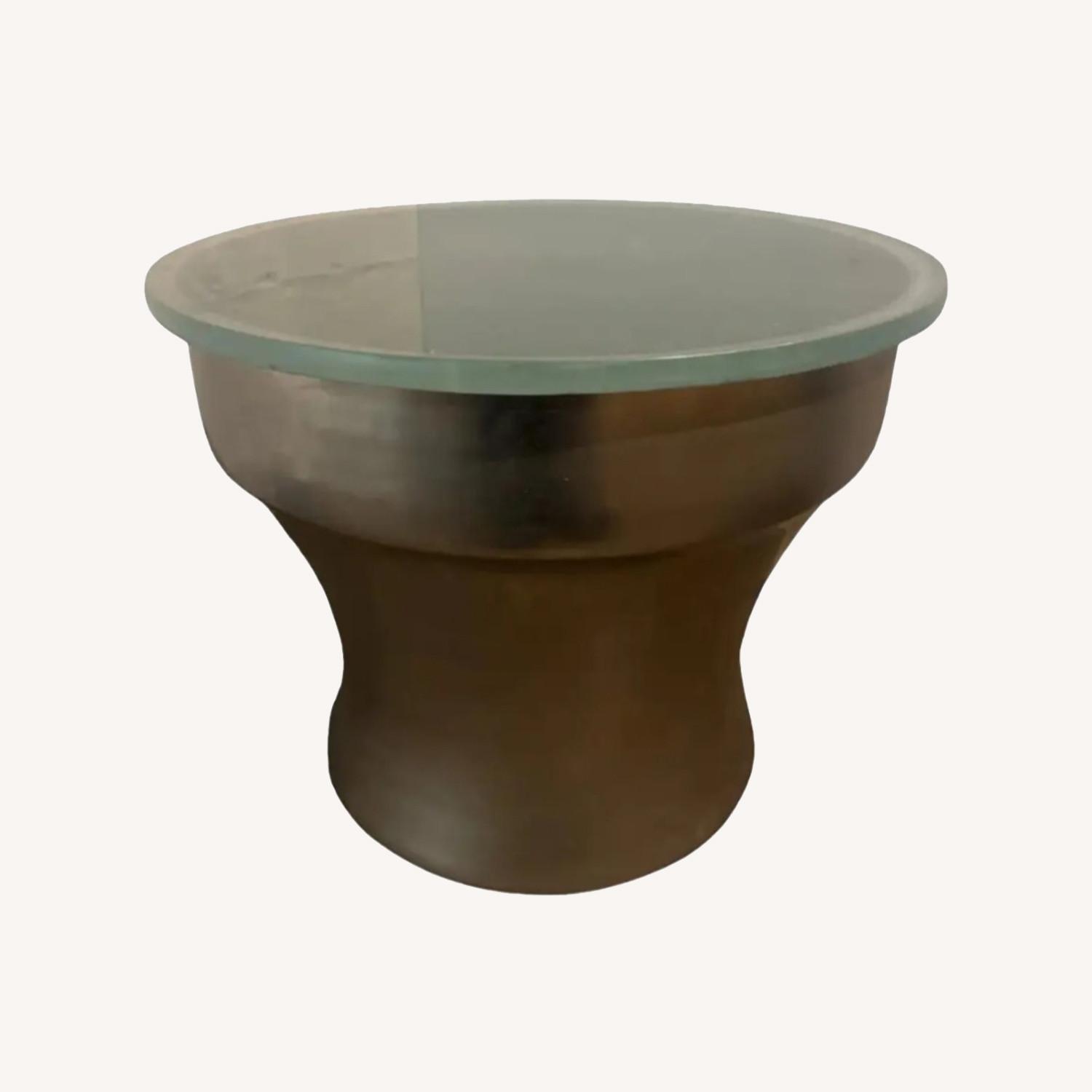 Seller's Notes:1970s Attributed to Karl Springer "Rain-Drum" Side Table in Polished Metal With Glass Top Can remove the glass top from the drum Please note there is no marking on the item MAKE ME AN OFFER