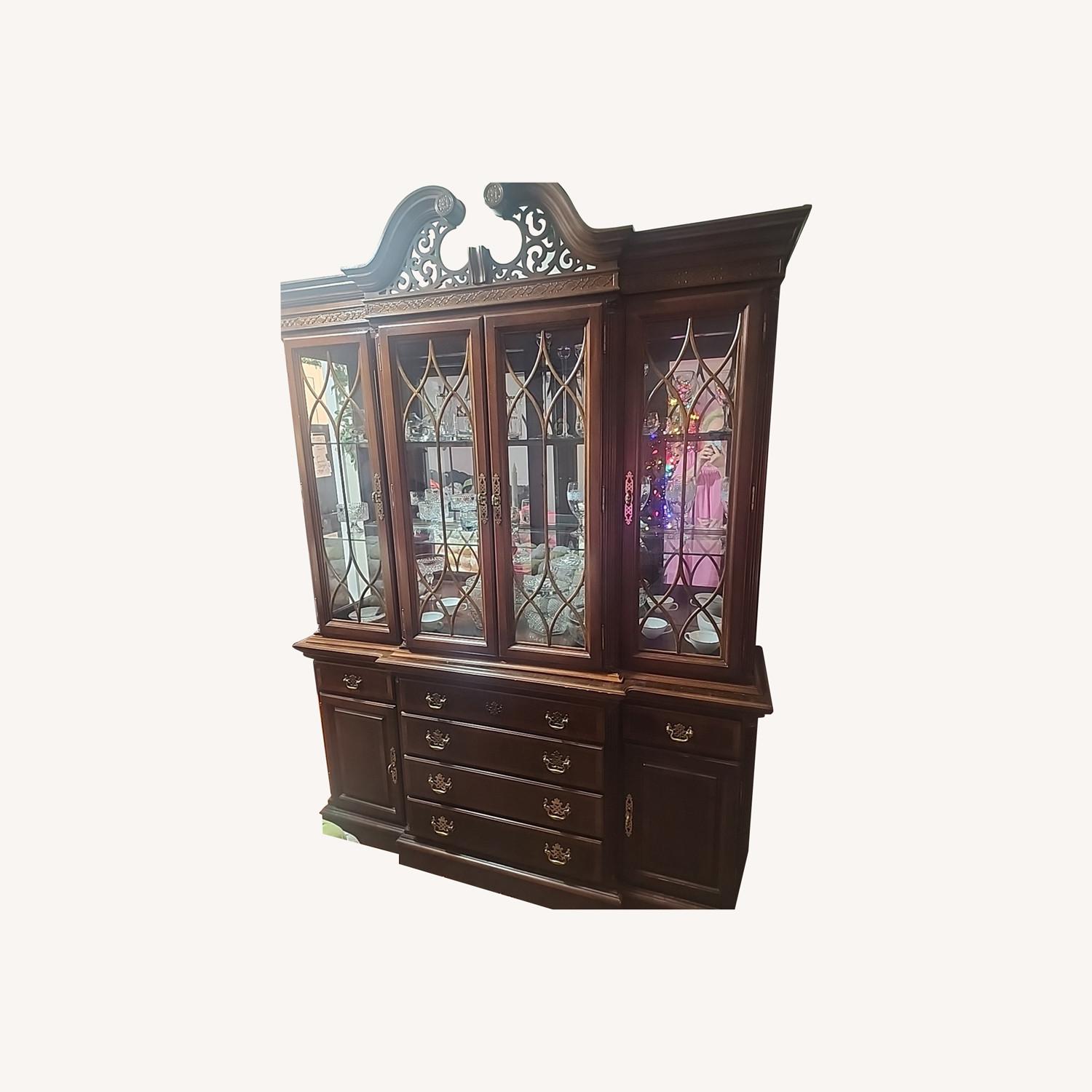 Seller's Notes:1980 Kensington china hutch 2 piece very beautiful no damage. Had this in family since I was born. I am moving and cant take it with me. Everything is included in the pics along with antique glass and china.