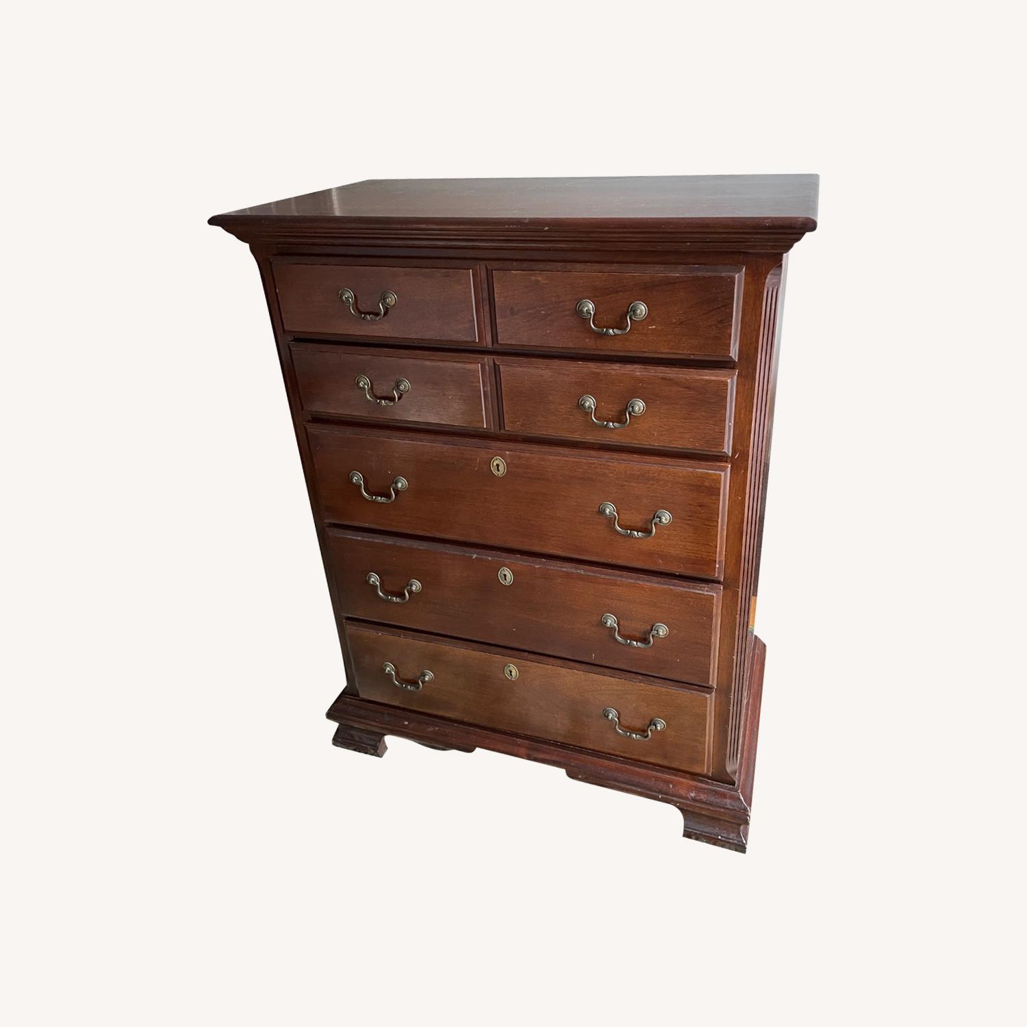 Seller's Notes:Purchased this from a moving sale where I was picking up another piece, and then when I got it home it didn’t fit the way I expected it to. In really nice condition except for the small amount of scarring on the top. I also cleaned it from the prior home. The two top drawers are two full width, not 4 small.