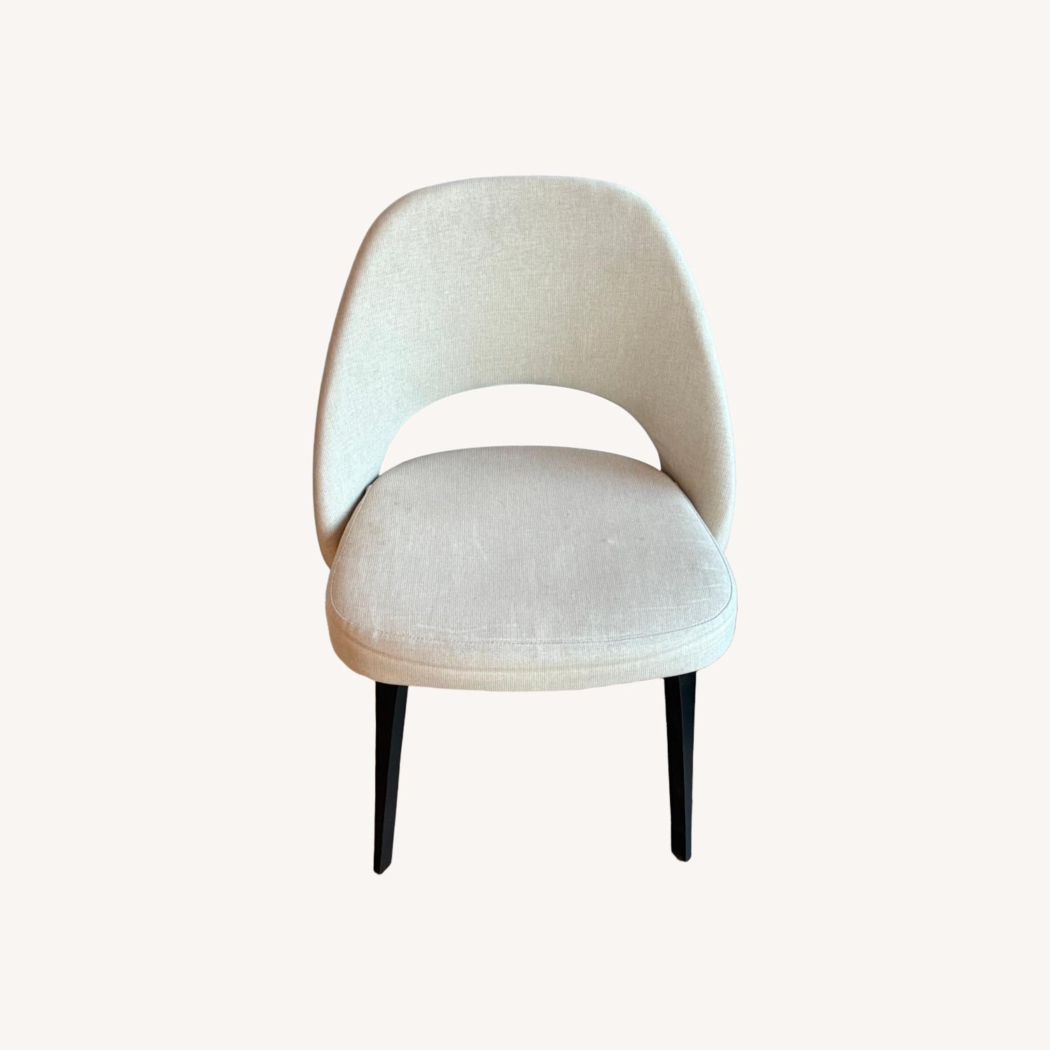 Seller's Notes:Four chairs in beige fabric. Comes with extra legs in case one ever gets damaged. Fabric on chairs needs clearned.