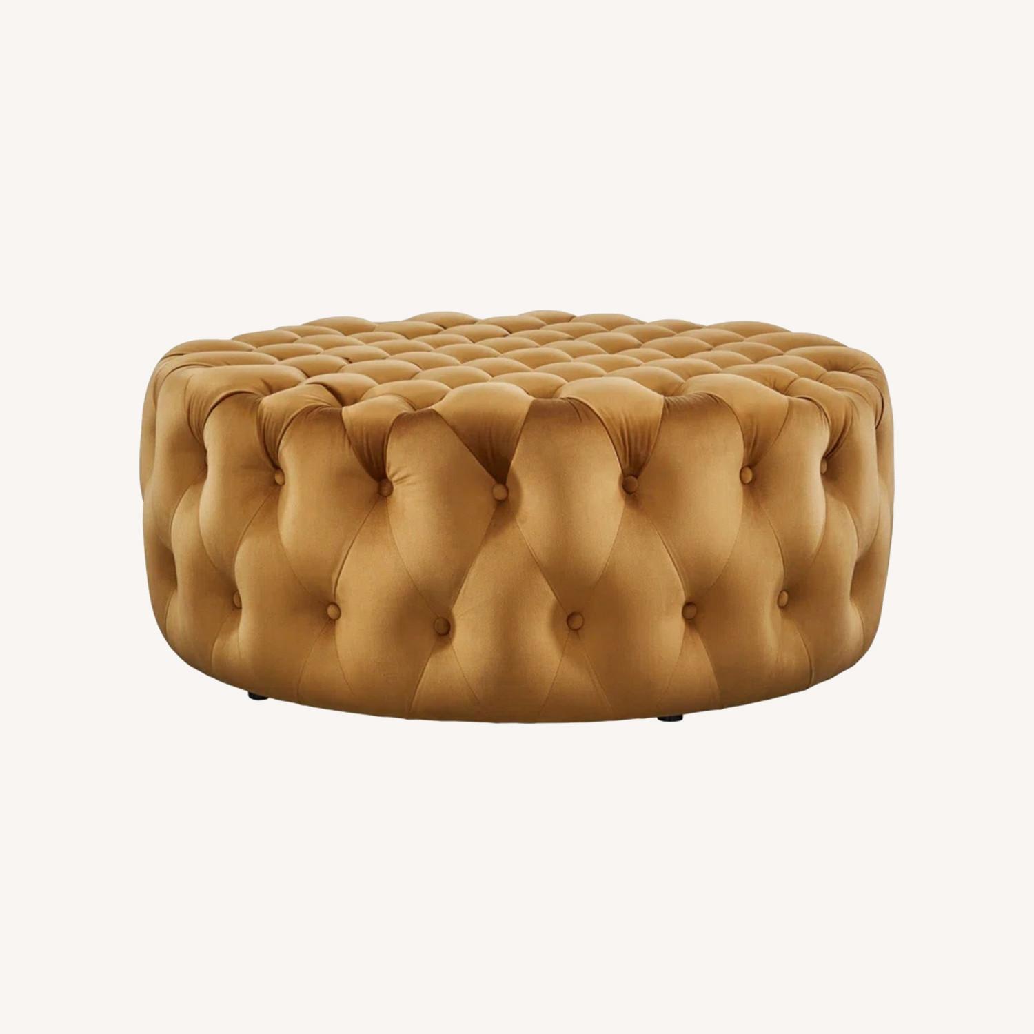 Enliven your decor with Amour. This large button-tufted round ottoman comes upholstered in soft and durable stain-resistant performance velvet fabric with dense foam padding for a luxurious seating experience. A versatile piece of furniture instantly updates your living room, bedroom, or entryway with this glamorous accent piece. Amour delivers an extra living room seat, a place to kick your feet up, or a convenient surface for magazines and other leisure items.