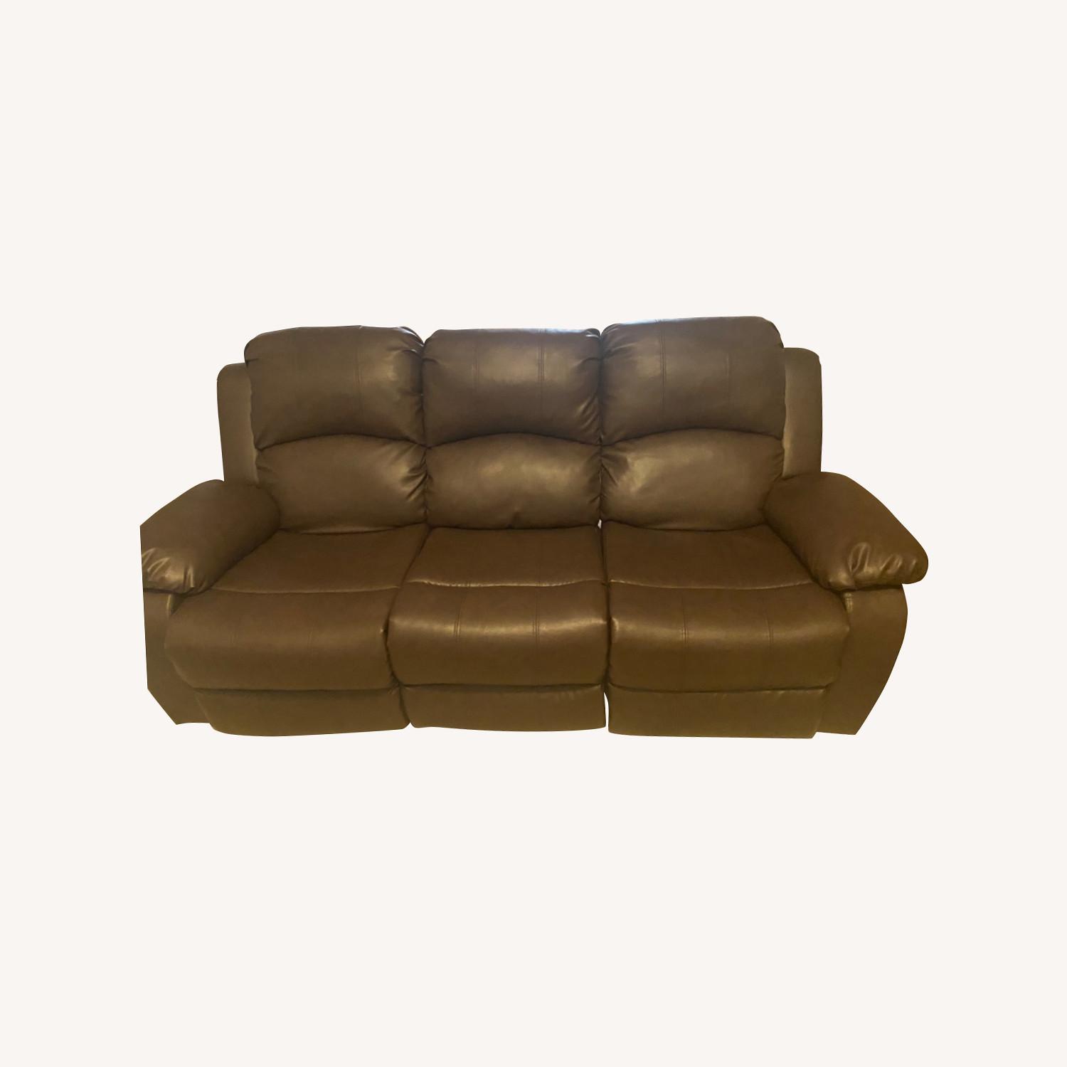 Seller's Notes:Leather loveseat with 2 recliners and middle seat that folds down into table with 2 cup holders