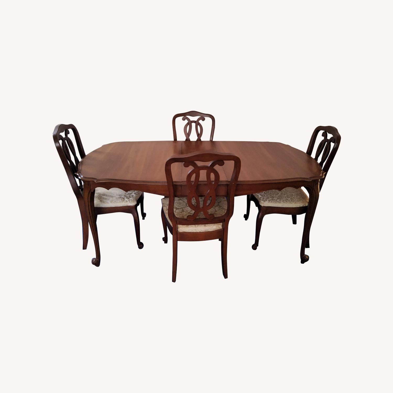 Seller's Notes:Beautiful vintage Lenoir dining room set in great condition. Solid wood table with matching Queen Anne–style chairs. Perfect for a dining room, kitchen, or anyone looking for a classic, elegant look. Table is smooth and polished with only minor normal wear -Chairs are sturdy, no wobbling -Upholstery is clean and ready to use -Overall excellent vintage condition