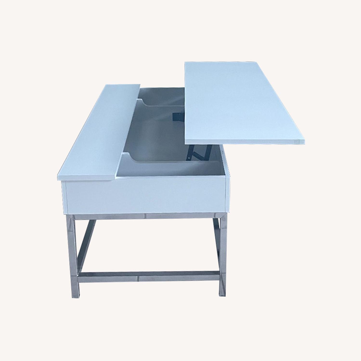 Seller's Notes:White lift-top coffee table as new. One year old from AFW Dimensions: 23.5x47.5” h20” h25” open