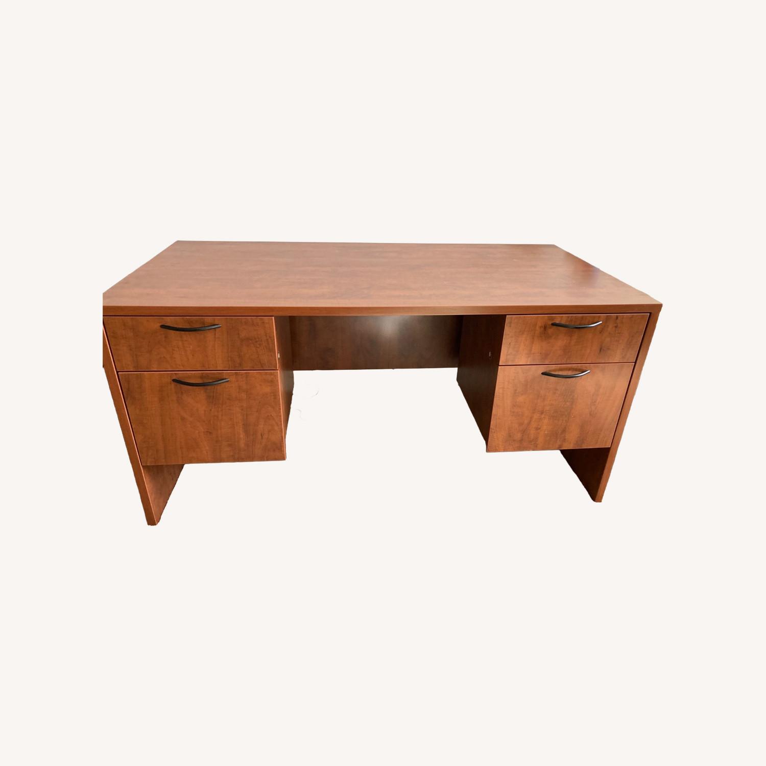 Seller's Notes:Beautiful contemporary executive desk with 4 lockable drawers. Color is light cherry. Excellent condition - no scratches or dents.