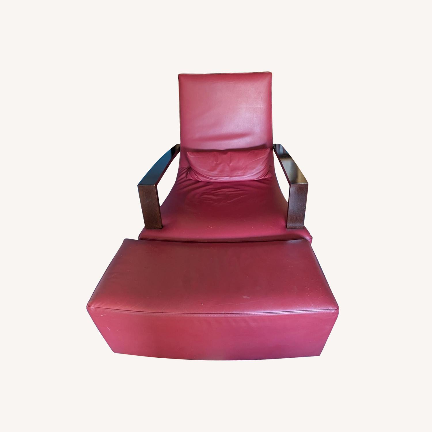 Collection: Alban-Sébastien Gilles for Ligne Roset Oxblood Leather Neo Chair + Ottoman, Set