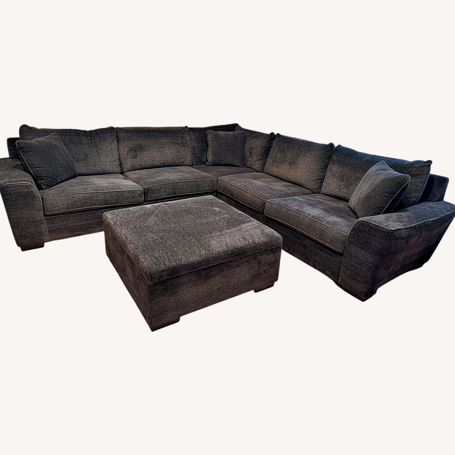 Living Spaces Dark Gray Sectional and Ottoman