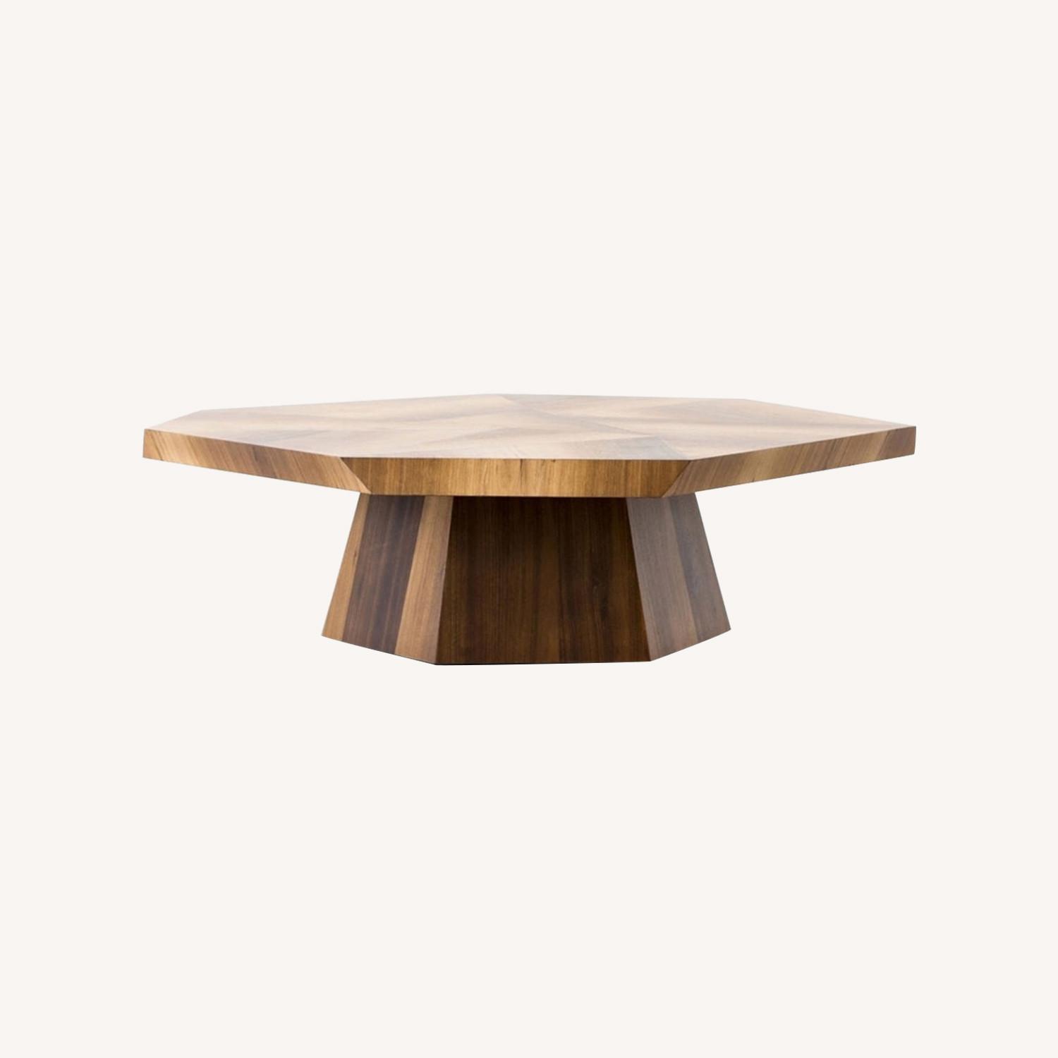 Seller's Notes:Bring the beauty of geometry (with a natural touch) into your modern living room. This unique coffee table features an octagon-shaped top and base with a faceted design in solid wood.