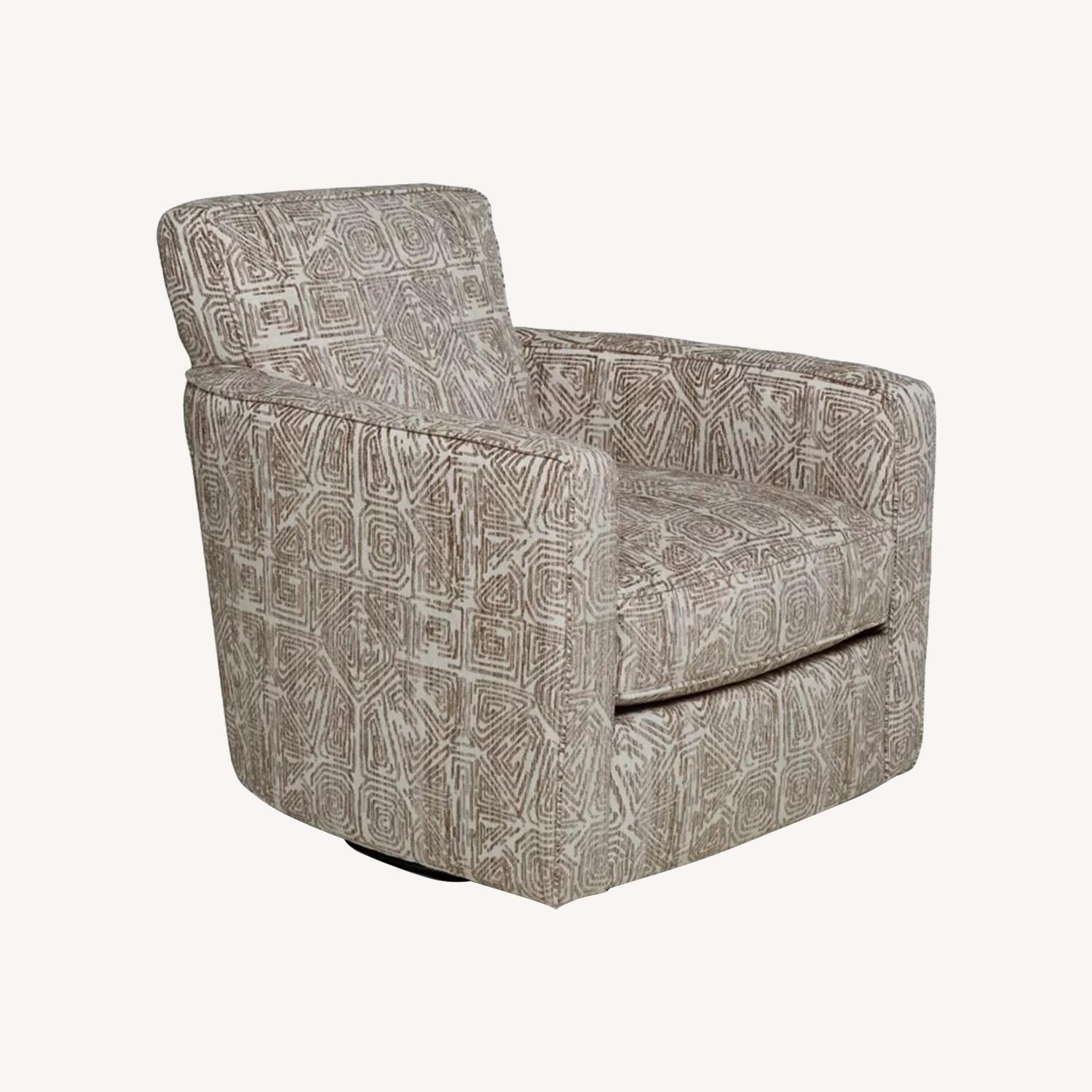 Instantly invigorate any setting of your home with this swivel accent chair. Upholstered in rich-feel, geometric-patterned fabric, its plush foam-filled cushions look as soft and indulgent as they feel. Its simple lines with track arms boldly contrast as with its eye-catching upholstery, imbuing it with a character that is bold and contemporary.