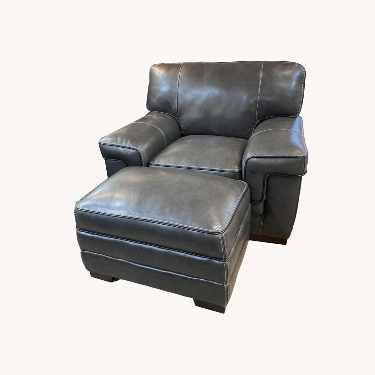Seller's Notes:Complete your living space with the sophisticated comfort of the Macy’s Myars Leather Chair & Ottoman. Upholstered in smooth, premium leather, this set delivers a clean, modern look paired with inviting comfort. The chair’s supportive cushioning and well-proportioned design make it perfect for reading, relaxing, or unwinding at the end of the day. The matching ottoman adds versatility and ease, offering a comfortable place to rest your feet or extra seating when needed. With its sleek lines and timeless appeal, the Myars Chair & Ottoman set blends effortlessly into modern and transitional interiors alike.