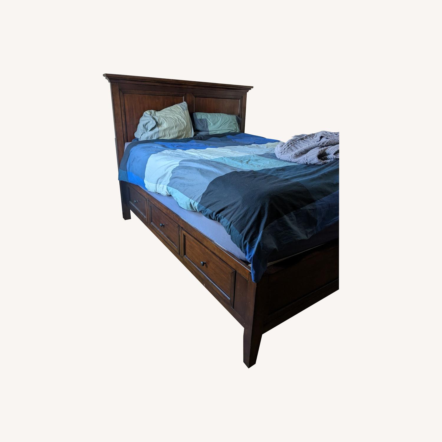 Seller's Notes:Beautiful hardwood solid bed from Macy's, that I sadly have to part due to a move. There are some scuffs, but the bed is solid.